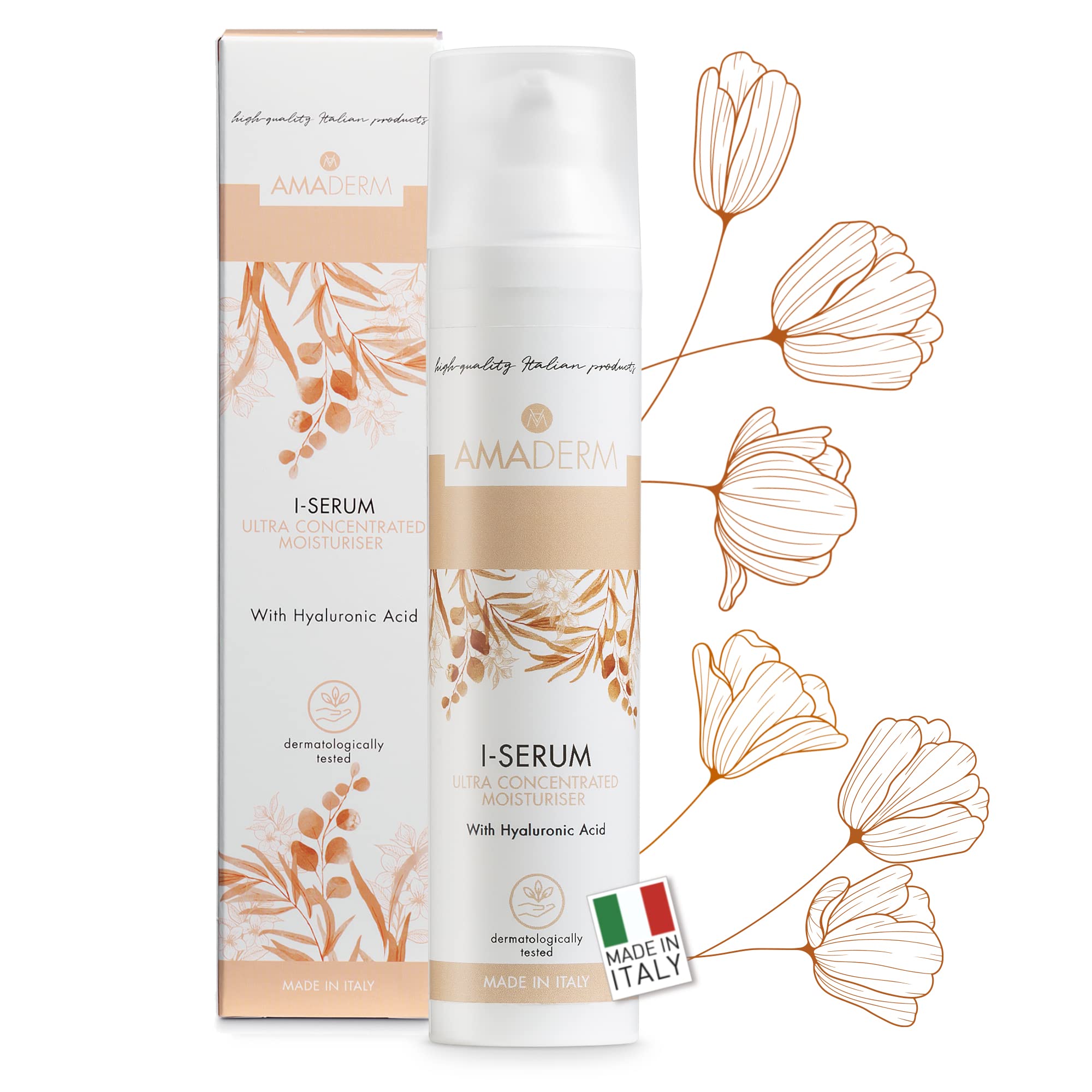 INGREDIENTS: Aqua, Propanediol, Glycerin, Polysorbate 20 Sodium Hyaluronate, Sodium Phosphate, Trisodium Ethylenediamine Disuccinate Citric Acid, Disodium Phosphate, Hydroxyethylcellulose, Polysorbate 60 Parfum, Phenoxyethanol APPLICATION: Apply morning and evening to face, neck and décolleté, with gentle circular massage. Stimulate action with: • AMADERM EVERY DAY CREAM as a complementary day treatment • AMADERM EVERY NIGHT CREAM or AMADERM AGELESS CREAM as a complementary night treatment. WARNINGS: External use, do not ingest. Do not use together with other products with exfoliating activity. In case of reaction due to individual hypersensitivity, discontinue use. Keep out of reach of children. INGREDIENTS AQUA, PROPANEDIOL, GLYCERIN, POLYSORBATE 20, SODIUM, HYALURONATE, SODIUM PHOSPHATE, TRISODIUM ETHYLENEDIAMINE, DISUCCINATE, CITRIC ACID, DISODIUM PHOSPHATE, HYDROXYETHYLCELLULOSE, POLYSORBATE 60, PERFUME, PHENOXYETHANOL INSTRUCTIONS FOR USE APPLICATION: Apply morning and evening to face, neck and décolleté, with gentle circular massage. Stimulate action with: • AMADERM EVERY DAY CREAM as a complementary day treatment • AMADERM EVERY NIGHT CREAM or AMADERM AGELESS CREAM as a complementary night treatment. SAFETY WARNING External use, do not ingest. Do not use in combination with other exfoliating products. In case of reaction due to individual hypersensitivity, discontinue use. Keep out of reach of children. See more[MADE IN ITALY and ENVIRONMENTALLY FRIENDLY] The products are manufactured in certified laboratories in Italy and contain only selected ingredients of natural origin and first quality. The packaging is made of recycled paper (FSC certified). [HOW TO APPLY] Non-greasy and non-sticky, absorbs easily. Apply morning and evening to face, neck and décolleté, with a gentle circular massage. [SKIN TYPES] I-Serum is recommended for normal to dry skin, both for use alone and in a cream base. Strengthening effect for mature skin with Ageless Cream. [CONCENTRATED MOISTURIZING SERUM] A concentrate of hydration and freshness to keep the skin hydrated and soft all day long, thanks to the deep action of hyaluronic acid and vitamin E. [PURE HYALURONIC ACID] Treatment based on micro-Hyaluronic acid (40 concentrated!) with a high hydrating power for soft, smooth and compact skin. Thanks to its volatile, almost elusive texture, it deeply hydrates the skin and prevents the signs of aging.AMADERM I-Serum 100ml Gezichtsserum met 100 zuiver hyaluronzuur en vitamine E MADE IN ITALY Vochtinbrengend en anti-oxidant serum voor gezicht en hals met opvullende werking INGREDIËNTEN: Aqua, Propanediol, Glycerin, Polysorbate 20 Sodium Hyaluronate, Sodium Phosphate, Trisodium Ethylenediamine Disuccinate Citric Acid, Disodium Phosphate, Hydroxyethylcellulose, Polysorbate 60 Parfum, Phenoxyethanol TOEPASSING: 's Ochtends en 's avonds aanbrengen op gezicht, hals en décolleté, met zachte ronddraaiende massage. Actie stimuleren met: • AMADERM EVERY DAY CREAM als een aanvullende dagbehandeling • AMADERM EVERY NIGHT CREAM of AMADERM AGELESS CREAM als een aanvullende nachtbehandeling. WAARSCHUWINGEN: Extern gebruik, niet inslikken. Do not use together with other products with exfoliating activity. In geval van reactie als gevolg van individuele overgevoeligheid, het gebruik staken. Buiten bereik van kinderen bewaren. INGREDIËNTEN AQUA, PROPANEDIOL, GLYCERIN, POLYSORBATE 20, SODIUM, HYALURONATE, SODIUM PHOSPHATE, TRISODIUM ETHYLENEDIAMINE, DISUCCINATE, CITRIC ACID, DISODIUM PHOSPHATE, HYDROXYETHYLCELLULOSE, POLYSORBATE 60, PARFUM, PHENOXYETHANOL GEBRUIKSAANWIJZING TOEPASSING: 's Ochtends en 's avonds aanbrengen op gezicht, hals en décolleté, met zachte ronddraaiende massage. Actie stimuleren met: • AMADERM EVERY DAY CREAM als een aanvullende dagbehandeling • AMADERM EVERY NIGHT CREAM of AMADERM AGELESS CREAM als een aanvullende nachtbehandeling. VEILIGHEIDSWAARSCHUWING Uitwendig gebruik, niet innemen. Niet gebruiken in combinatie met andere exfoliërende producten. In geval van reactie als gevolg van individuele overgevoeligheid het gebruik staken. Buiten bereik van kinderen bewaren. Meer bekijken[GEMAAKT IN ITALIË en MILIEUVRIENDELIJK] De producten worden vervaardigd in gecertificeerde laboratoria in Italië en bevatten uitsluitend geselecteerde ingrediënten van natuurlijke oorsprong en eerste kwaliteit. De verpakking is gemaakt van gerecycleerd papier (FSC gecertificeerd). [HOE TE TOEPASSEN] Niet vetig en niet plakkerig, absorbeert gemakkelijk. 's Morgens en 's avonds aanbrengen op gezicht, hals en décolleté, met een zachte cirkelvormige massage. [HUIDTYPEN] I-Serum wordt aanbevolen voor de normale tot droge huid, zowel voor gebruik alleen als in een crèmebasis. Versterkend effect voor de rijpere huid met Ageless Cream. [GECONCENTREERD HYDRATEREND SERUM] Een concentraat van hydratatie en frisheid om de huid de hele dag gehydrateerd en zacht te houden, dankzij de diepe werking van hyaluronzuur en vitamine E. [PUUR HYALURONZUUR] Behandeling op basis van micro-Hyaluronzuur (40 geconcentreerd!) met een hoog hydraterend vermogen voor een zachte, gladde en compacte huid. Dankzij de vluchtige, bijna ongrijpbare textuur hydrateert het de huid diepgaand en voorkomt het de tekenen van veroudering.