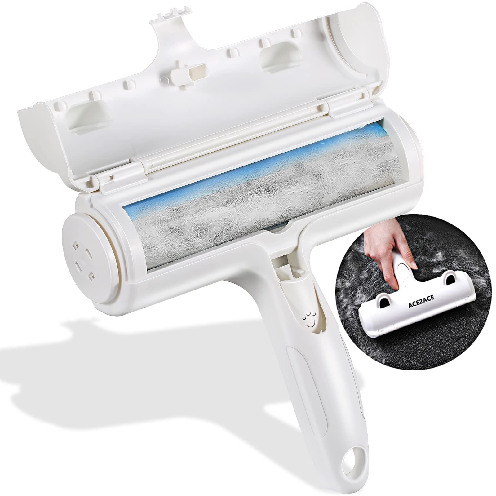 ? ?Environmentally Friendly & Economical?: ACE2ACE pet hair remover roller can be reused which no need for expensive replacement parts; You just need to move it forward and backward in short movements gentley. ? ?Clean Pets Hairs and General Dust are all OK?: It works brilliantly with dogs, cats and rabbit hairs, but even fine dust and fluff. If you are fed up of a home filled with pet hair everywhere, then AECE2ACE pet hair remover roller is the best helper for you! eg greyhound and Westie, German shepherd and a Chihuahua hairs are all OK!. ? ?Self-Cleaning System, No need Wash?: Just pinch one of the two silicone leather mats on the brush and swing it several times. Then the roller will clean itself and collects all hair and fur into the top compartment. The collection tray worked such well, easy to open and use. ? ?Can be Used on Any Material?: It picks up every single pet hair from those highly sticky hairs, eg Velvet/ Cloth Sofas, Rugs, Carpets, Beds, Cushions, Curtains, Pillows and Kennel! ?Please Notes: It didn’t work well on those too smooth and hard material surface. ? ?Perfect Pet Hair Remover Roller?: The pet hair remover roller has a very effective fleece force and made of a semi roller coated with a static charge material. Just a couple of passes, you can collect much more hairs from fixed areas like Carpet, Furniture, Rugs, Stairs, bedding and Sofa. You can use it back and forth but it is better if you use it towards the back.