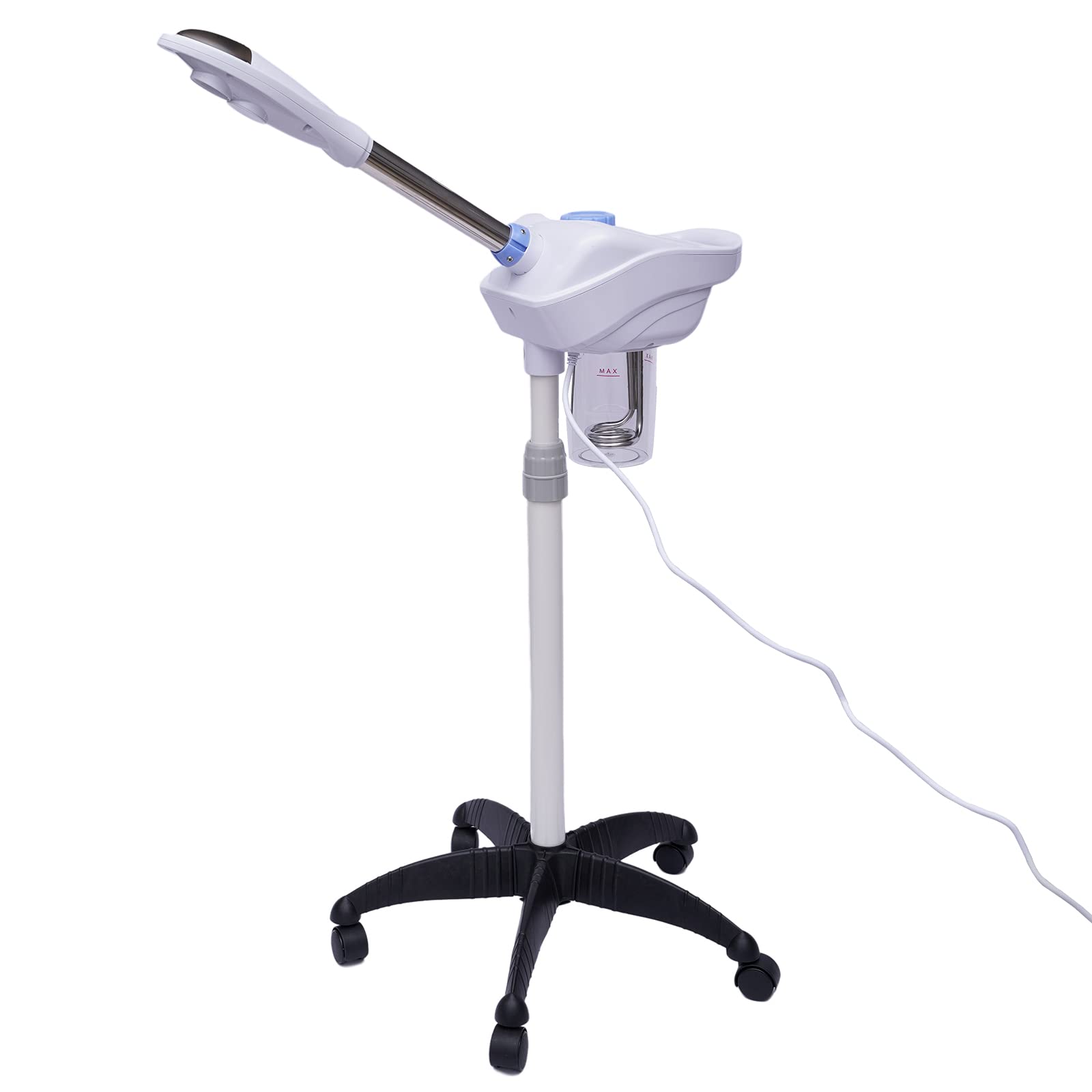 Instructions for Use: Our facial steamer is suitable for all skin types, providing moisturizing, cleansing, and anti-inflammatory benefits. It is ideal for use at home, in beauty salons, spas, and more. Specifications: Model: 08A Material: ABS, PC, PP Voltage: 220-240V 50-60Hz Power: 750W Product Benefits: Cleanses, rejuvenates, brightens, and smooths Plug: European standard Mounting Type: Freestanding Color: White Spraying Distance: Approximately 30-40cm Using Distance: Approximately 25cm Rotating Nozzle Angle: 360 Water Tank Capacity: 860ml Power Cord Length: Approximately 1.8m Usage Time: Approximately 30 minutes Mist time: 3-5 min. Gross weight: 3.5 kg. Net weight: 3 kg. Package dimensions: 54 x 19 x 26.5 cm. Stand height: 1.06 m. Spray tube height: 1.26 m. Product width: 52 cm. Stand adjustment range: 1-1.3 cm. Package contents: 1 main facial steamer unit. 1 nozzle arm. 2 support frames. 5 support feet. 1 connecting bracket. 1 English user manual. All necessary installation accessories.High safety: The facial steamer is equipped with a safety system that automatically shuts off the power when the water level is too low or too high. This thoughtful design reduces the likelihood of accidents such as severe dry burns. Easy to install: The facial steamer comes with a detailed installation guide and a full set of accessories. For easy installation, simply follow the steps, which is very convenient. Large capacity: The water tank capacity (29.08 ounces) allows you to enjoy a pleasant, warm steam experience for 30 minutes after filling it with water. The large water tank volume also reduces the frequency of refills. Comfortable experience: The delicate nozzle of our facial steamer delivers a gentle, warm steam for a comfortable and enjoyable experience. Sturdy and durable: This facial steamer is made of high-quality ABS, which has excellent impact resistance, making it sturdy and durable.Acesunny Vaporisateur 2 en 1 à ozone - Appareil de beauté - Sauna facial - 750 W - Rotatif - Pour le visageDESCRIPTION DU PRODUIT Mode d'emploi : Notre vaporisateur facial convient à tous les types d'humidité de la peau, de nettoyage, anti-inflammatoire, etc. Il est adapté pour les maisons, les salons de beauté, les spas, etc. Caractéristiques : Modèle : 08A Matériel: ABS, PC, PP Tension : 220-240 V 50-60 Hz Puissance : 750 W. Avantages du produit : nettoyer, rajeunir, éclaircir et lisser Prise : norme européenne. Type de montage : autonome Couleur : blanc. Distance de pulvérisation : environ 30-40 cm. Distance d'utilisation : environ 25 cm. Buse rotative angle : 360 . Capacité du réservoir d'eau : 860 ml. Longueur du câble d'alimentation : environ 1,8 m. Temps d'utilisation : environ 30 minutes. Temps de brumisation : 3-5 min. Poids brut : 3,5 kg. Poids net : 3 kg. Dimensions du colis : 54 x 19 x 26,5 cm. Hauteur du support : 1,06 m. Hauteur du tube de pulvérisation : 1,26 m. Largeur du produit : 52 cm. Plage de réglage du support : 1-1,3 cm. Contenu de la livraison : 1 appareil principal de vapeur pour le visage. 1 bras de buse. 2 cadres de support. 5 pieds de support. 1 étrier de connexion. 1 manuel d'utilisation en anglais. Tous les accessoires nécessaires à l'installationHaute sécurité : le vaporisateur facial est équipé d'un système de protection qui coupe automatiquement l'alimentation lorsque le niveau d'eau est trop bas ou trop élevé. Cette construction bien pensée réduit la probabilité d'accidents tels que B. brûlures sèches considérables. Facile à installer : le vaporisateur facial est livré avec un guide d'installation détaillé et une gamme complète d'accessoires. Pour une installation facile, il vous suffit de suivre les étapes d'installation, ce qui est très pratique. Grande capacité : la capacité du réservoir d'eau (29,08 onces) vous permet de profiter d'une expérience de vapeur chaude et agréable pendant 30 minutes après l'avoir rempli d'eau. Le grand volume du réservoir d'eau réduit également la fréquence de remplissage d'eau. Expérience confortable : la buse délicate de notre vapeur faciale vous apporte une vapeur délicate et chaude, de sorte que vous avez une expérience confortable et agréable. Robuste et durable : ce vaporisateur facial est fabriqué en ABS de haute qualité, qui a une excellente résistance aux chocs, ce qui rend ce vaporisateur facial robuste et durable.