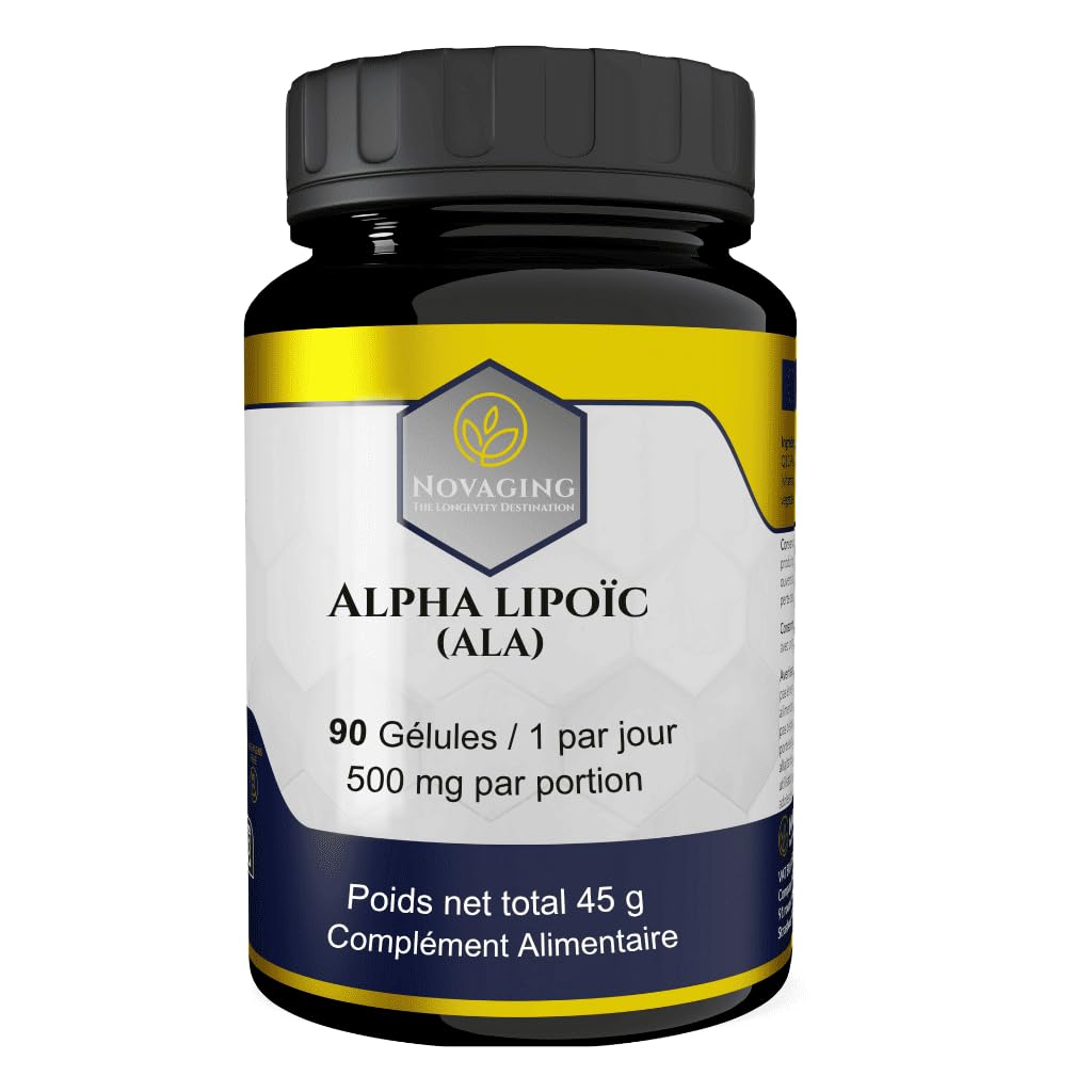 QUALITY SATISFACTION: NOVAGING INSTITUT offers a wide range of high-quality, 100 plant-based food supplements suitable for vegetarians and vegans. Formulated in France and manufactured from premium raw materials, traceable and controlled in certified facilities. Each batch is produced in ISO 22000 and HACCP certified workshops. Our customer support is available 24 7. NOVAGING INSTITUT - The Longevity Destination: Founded in 2011, our mission is the design and marketing of products, services, and technological devices that contribute to human longevity. CHOOSE NOVAGING: Join the Novaging Longevity Program. Benefit from the latest scientific discoveries in proactive aging management. Novaging Institut sets an impeccable standard. Demand excellence, reject superficiality, and opt for clinically validated solutions, guaranteed without compromise or artifice. 100 PLANT-BASED COMPOSITION: Vegetable capsules suitable for vegetarian and vegan diets. No artificial additives, no GMOs, and no common allergens such as gluten, lactose, or soy. A simple and transparent formula. Standardized quality: Raw material standardized to 98 (thioctic acid) for consistent quality from batch to batch. BENEFITS: High-dose ALA 500 mg: 500 mg of alpha-lipoic acid (ALA) per capsule – 1 capsule day for a simple routine.QUALITÉ SATISFACTION : NOVAGING INSTITUT propose une vaste gamme de compléments alimentaires de haute qualité, d'origine 100 végétale, conviennent aux végétariens et aux vegans. Formulés en France et fabriqués à partir de matières premières de qualité supérieure, traçables et contrôlés dans des usines certifiées. Chaque lot est élaboré dans des ateliers certifiés ISO 22000 et HACCP. Notre support client est à votre disposition 24 24. NOVAGING INSTITUT - The Longevity Destination : Fondée en 2011, a pour mission la conception et la commercialisation de produits, de services et de dispositifs technologiques contribuant à la longévité humaine. CHOISISSEZ NOVAGING : Rejoignez Novaging Longevity Program. Bénéficiez des dernières découvertes scientifiques en matière de gestion proactive du vieillissement. Novaging Institut impose un standard irréprochable. Exigez l'excellence, refusez la superficialité et optez pour des solutions cliniquement validées, garantie sans compromis ni artifice. COMPOSITION 100 VÉGÉTALE : Gélules végétales adaptées aux régimes végétarien et vegan. Sans additifs artificiels, sans OGM et sans allergènes courants comme le gluten, le lactose ou le soja. Une formule simple et transparente. Qualité titrée : matière première titrée à 98 (acide thioctique) pour une qualité constante d'un lot à l'autre. AVANTAGES ALA 500 mg fortement dosé : 500 mg d'acide alpha-lipoïque (ALA) par gélule – 1 gélule jour pour une routine simple.Acide Alpha-Lipoïc 500 mg – 90 gélules 100 végétales – titré 98 - Dose maximale. Testé Sans OGM ni allergènes.