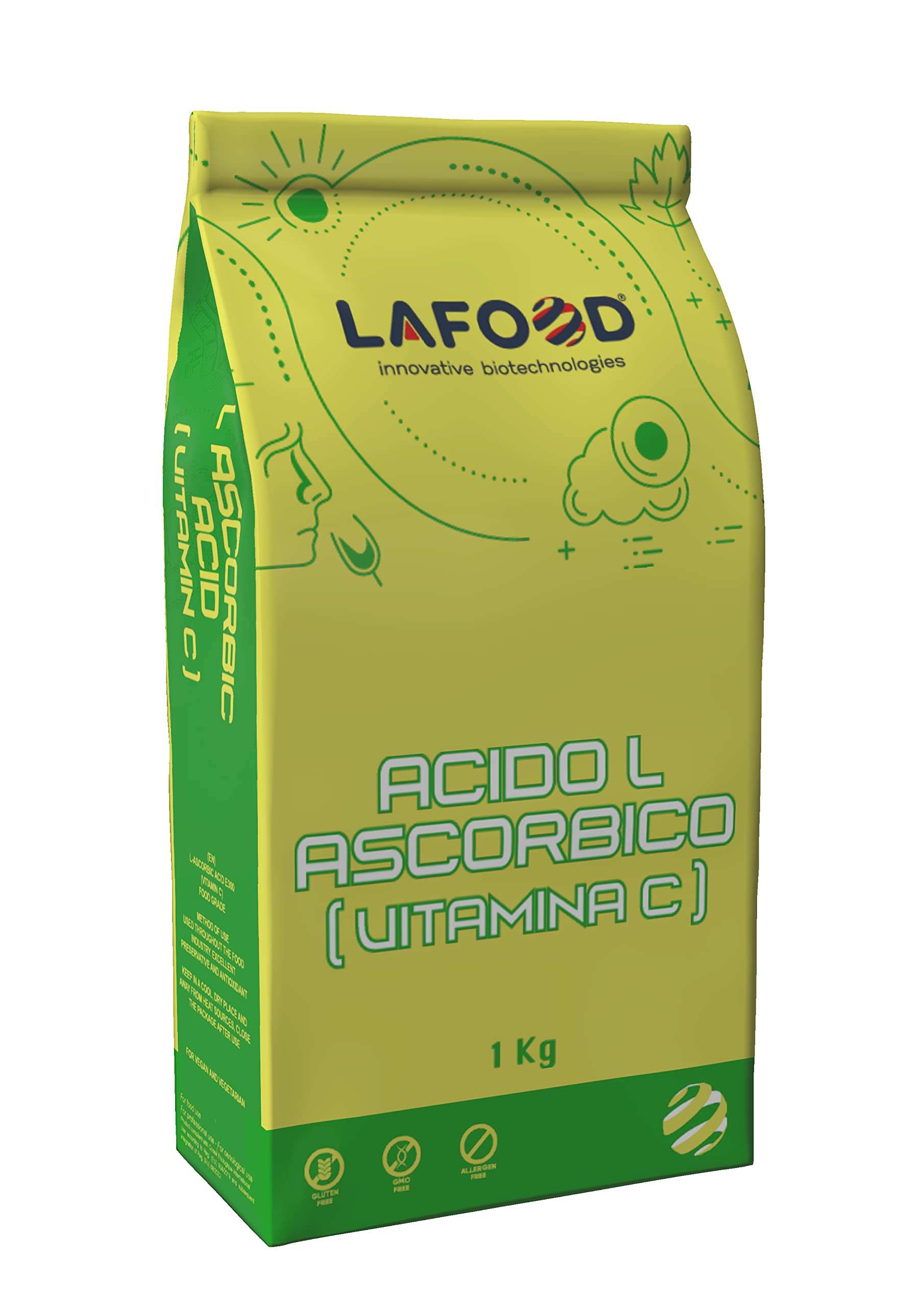 Acide Ascorbique Pur Lafood - Vitamine C - 1 kg E300 - Alimentaire - Sans OGM - Sans Gluten