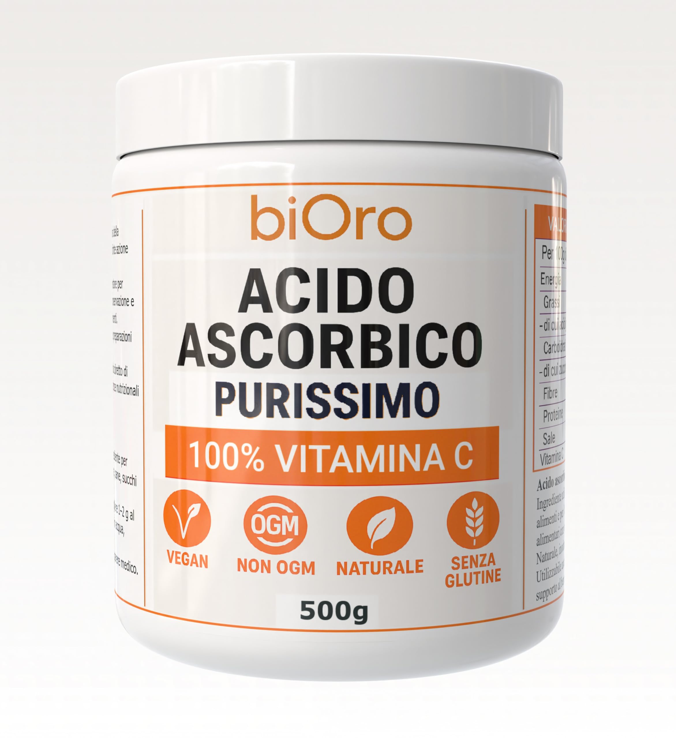 Acide Ascorbique Purissimo 500g 100 Vitamine C en Poudre Alimentaire (E300) Végétalien, Naturel, Sans Gluten et Sans OGM Antioxydant et Conservateur Alimentaire