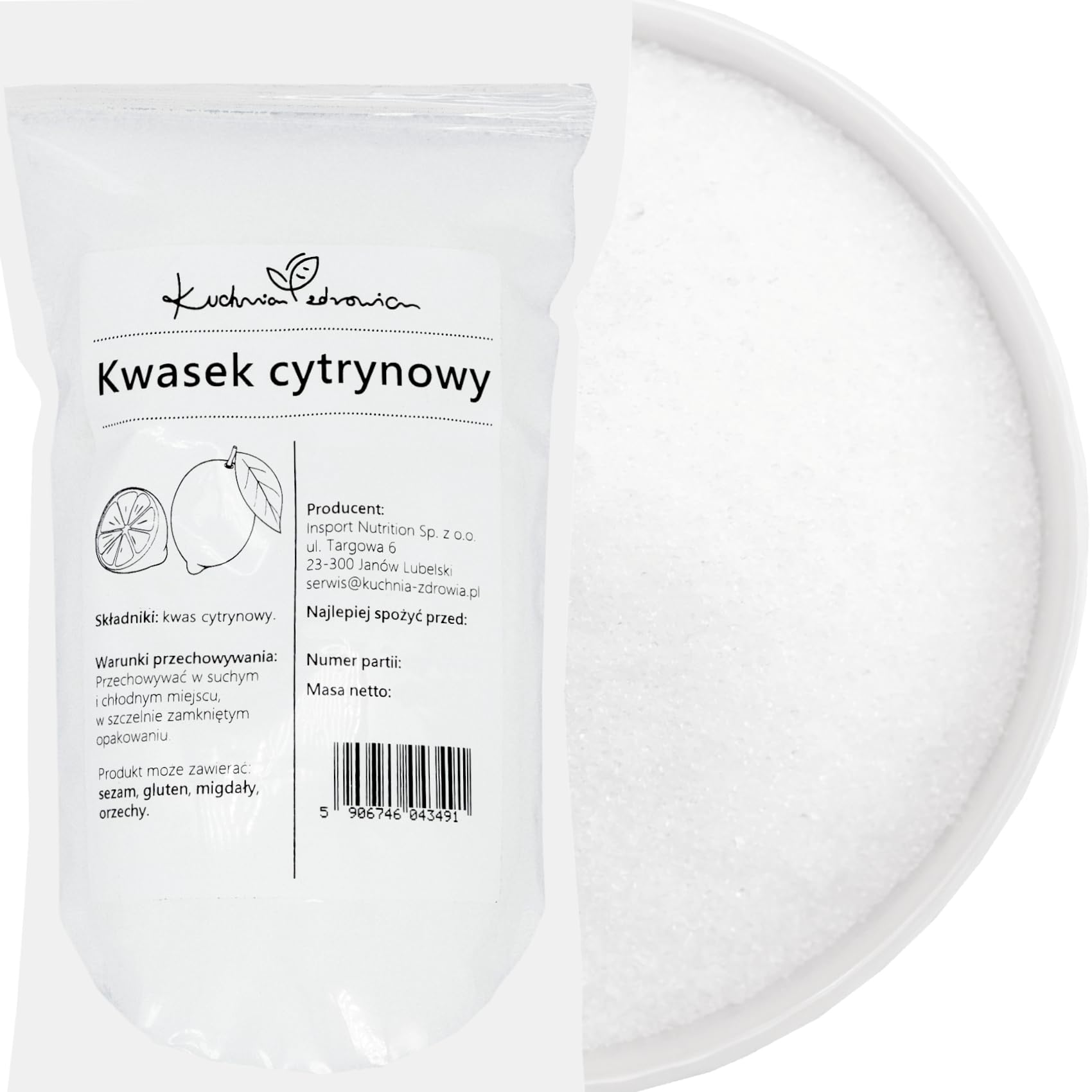 ? Produced by KUCHNIA ZDROWIA, a trusted brand – Quality controlled, carefully packaged. May contain traces of sesame, almonds, gluten, or tree nuts. Recommended storage: in a dry, cool, and tightly closed place. Environmentally friendly and additive-free – Pure formula without preservatives, colors, or artificial flavors. Suitable for those seeking natural solutions for the home and food. Multi-purpose kitchen ingredient – Used to preserve food, stabilize jams, or adjust the pH of dishes. It is a mild, safe acid, widely used in natural and plant-based cuisine. Eco-friendly and effective household cleaner – Dissolves limescale, removes soap scum, and restores shine to your appliances. Citric acid is an essential ally for environmentally friendly cleaning. 100 pure, food-grade citric acid – Ideal for use in cooking, jams, drinks, or dishes requiring a touch of natural acidity. A healthy and effective alternative to enhance your homemade recipes.