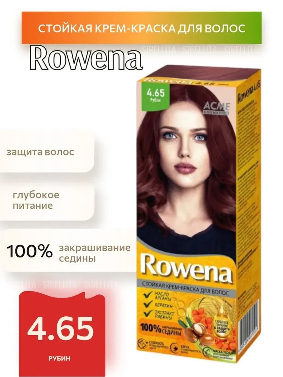 Стойкая крем-краска для волос Rowena тона 4.65 «Рубин» — продукт бренда ACME COSMETICS, производится в Беларуси.