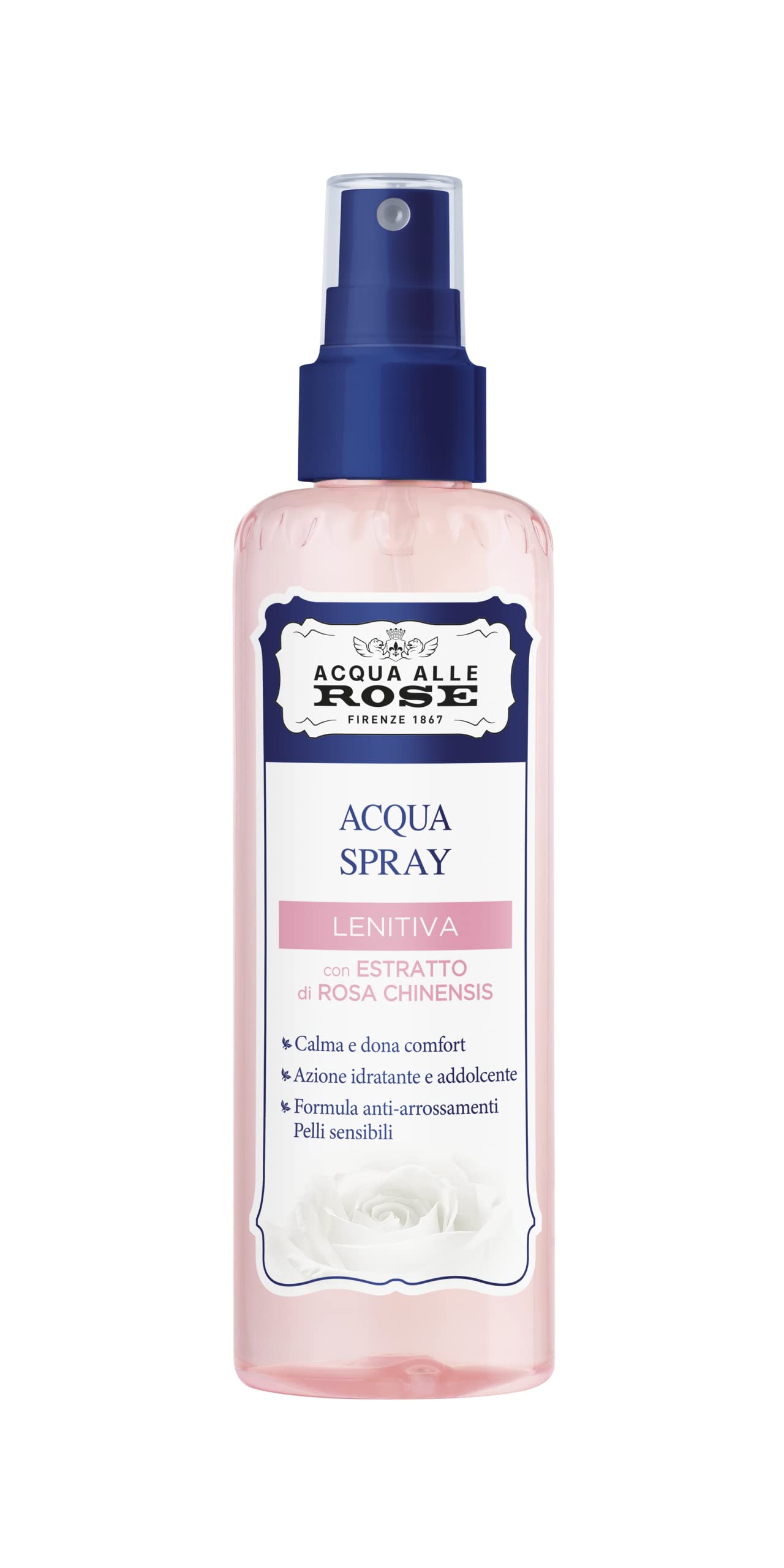 This soothing rose water facial spray, with 98 naturally derived ingredients, refreshes and helps calm sensitive skin. Thanks to its unique formula with Chinese rose extract, renowned for its hydrating and soothing properties, it calms and comforts the skin. It's excellent for any time of day: it can be sprayed as a toner, used as a primer or makeup setting spray, and refreshes the skin while enveloping it in an elegant rose fragrance. The formula is dermatologically tested. INGREDIENTS Aqua, Alcohol Denat., Propanediol, Polysorbate 20, Rose Chinensis Callus Lysate, Rose Gaule Flower Water, Levulinic Acid, Sodium Benzoate, Glycerin, Sodium Levulinate, Sodium Gluconate, Parfum, Citric Acid, Caprylyl Capryl Glucoside. DIRECTIONS FOR USE Spray from a distance of at least 15 cm onto the face and décolletage, keeping your eyes and mouth closed. We recommend 4-5 sprays per use. SAFETY WARNING Caution: Avoid contact with eyes and mouth. Contains alcohol may cause irritation to sensitive skin. See moreFor best results, use with other products in the soothing line. Spray onto your face and heels from a distance of at least 15 cm, keeping your eyes and mouth closed. 4-5 sprays are recommended with each use. Excellent at any time of day: you can spray it as a toner, use it as a primer, or set your makeup. With 98 naturally derived ingredients, it refreshes and helps calm sensitive skin thanks to the revitalizing power of roses. Its unique formula with Rose Chinensis extract soothes and comforts the skin.Acqua alle Rose, Eau de pulvérisation faciale apaisante, idéale pour les peaux sensibles, rafraîchit et apaise la peau, avec extrait de rose chinois, 200 mlDESCRIPTION DU PRODUIT DESCRIPTION DU PRODUIT L'eau spray visage apaisante d'eau aux roses, avec 98 d'ingrédients d'origine naturelle, rafraîchit et aide à calmer la peau sensible. Grâce à sa formule inédite à l'extrait de rose chinois, réputée pour ses propriétés hydratantes et apaisantes, elle apaise et apporte du confort à la peau. Il est excellent pour tout moment de la journée : il peut se vaporiser comme un tonique, agit comme un primer ou un fixatif du maquillage, rafraîchit la peau en l'enveloppant dans un élégant parfum de rose. La formule est testée dermatologiquement. INGRÉDIENTS Aqua, Alcohol Denat, Propanediol, Polysorbate 20, Rose Chinensis Callus Lysate, Rose Gaule Flower Water, Levulinic Acid, Sodium benzoate, Glycerin, Sodium Levulinate, Sodium Gluconate, Parfum, Citric Acid, Caprylyl Capryl Glucoside. MODE D'EMPLOI Vaporisez à une distance d'au moins 15 cm sur le visage et le décolleté et gardez les yeux et la bouche fermés. Nous recommandons 4 5 doses par utilisation. AVERTISSEMENT DE SÉCURITÉ Attention : évitez tout contact avec les yeux et la bouche. Contient de l'alcool, peut provoquer une irritation des peaux sensibles. Voir plusPour des résultats optimaux, utilisez-la avec les autres produits de la ligne apaisante. Vaporise sur le visage et les escarpins à une distance d'au moins 15 cm en gardant les yeux et la bouche fermés. 4 5 distributions sont recommandées à chaque utilisation. Excellent à tout moment de la journée : vous pouvez vaporiser comme un tonique, agit comme un primer ou fixatif du maquillage. Avec 98 d'ingrédients d'origine naturelle, il rafraîchit et aide à calmer la peau sensible grâce au pouvoir vitalisant des roses. Sa formule inédite à l'extrait de Rose Chinensis apaise et apporte confort à la peau.