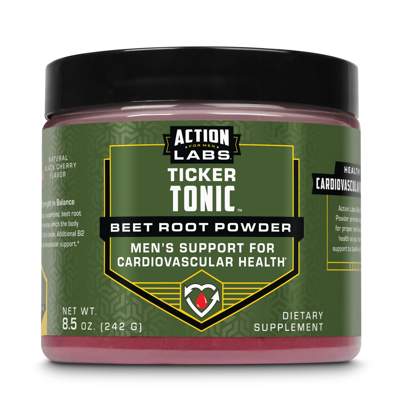Action Labs Quality - Sourced from organic beets, our beetroot supplement is made in our GMP-certified facility in addition, every ingredient is tested in our in-house, state-of-the-art lab in Utah to ensure purity, potency and quality. Powering Performance - Designed to give you the nutrients you need to stay at the top of your game, Action Labs for Men brings you top-of-the-line ingredients and innovative formulas made to support the male body through all stages of adulthood. Easy to Use - Simply mix 1 scoop of our beetroot powder in 8oz of water or your favorite beverage. Each serving supplies 5 grams of organic beetroot and 1.3mg of vitamin B2 (100 your DV) for additional support. You'll enjoy the natural, black cherry flavor. Nitric Oxide Supplement - Heralded as a superfood, beet root contains nitrates which the body converts to nitric oxide. We've added 100 your Daily Value of vitamin B2 (riboflavin) for powerful heart health support. . Ticker Tonic for Men - Powerfully crafted for heart health and more, Action Labs Ticker Tonic Beet Root Powder provides strong cardiovascular support to help you tackle whatever life throws your way. .