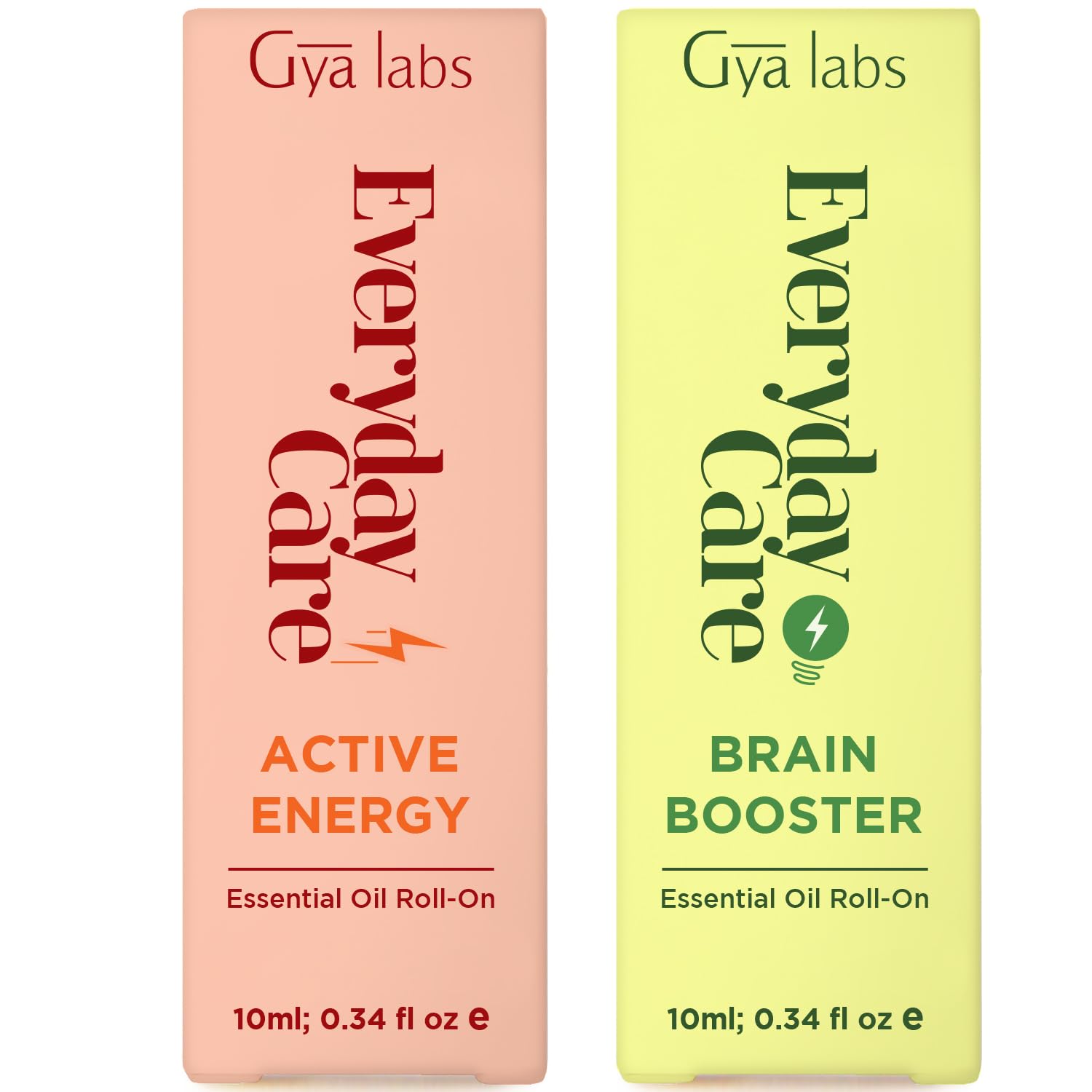 Active Energy & Brain Booster Roll On Set - Essential Oils Aromatherapy Roll On with Essential Oil Set - 2x0.34 fl oz - Gya Labs