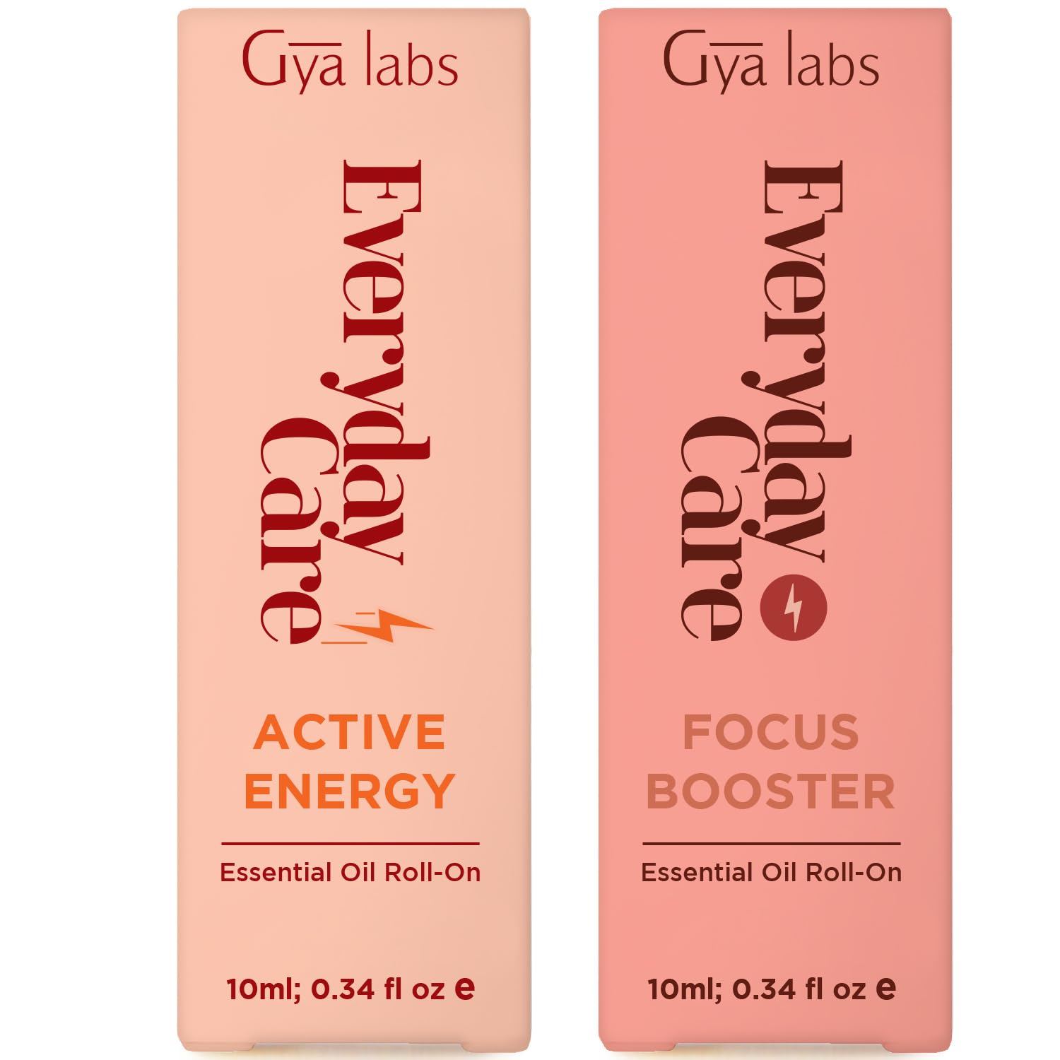 Active Energy & Focus Booster Roll On Set - Essential Oils Aromatherapy Roll On with Essential Oil Set - 2x0.34 fl oz - Gya Labs