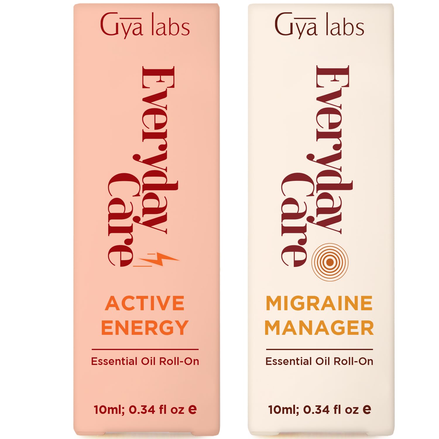 Active Energy & Migraine Manager Roll On Set - Essential Oils Aromatherapy Roll On with Essential Oil Set - 2x0.34 fl oz - Gya Labs