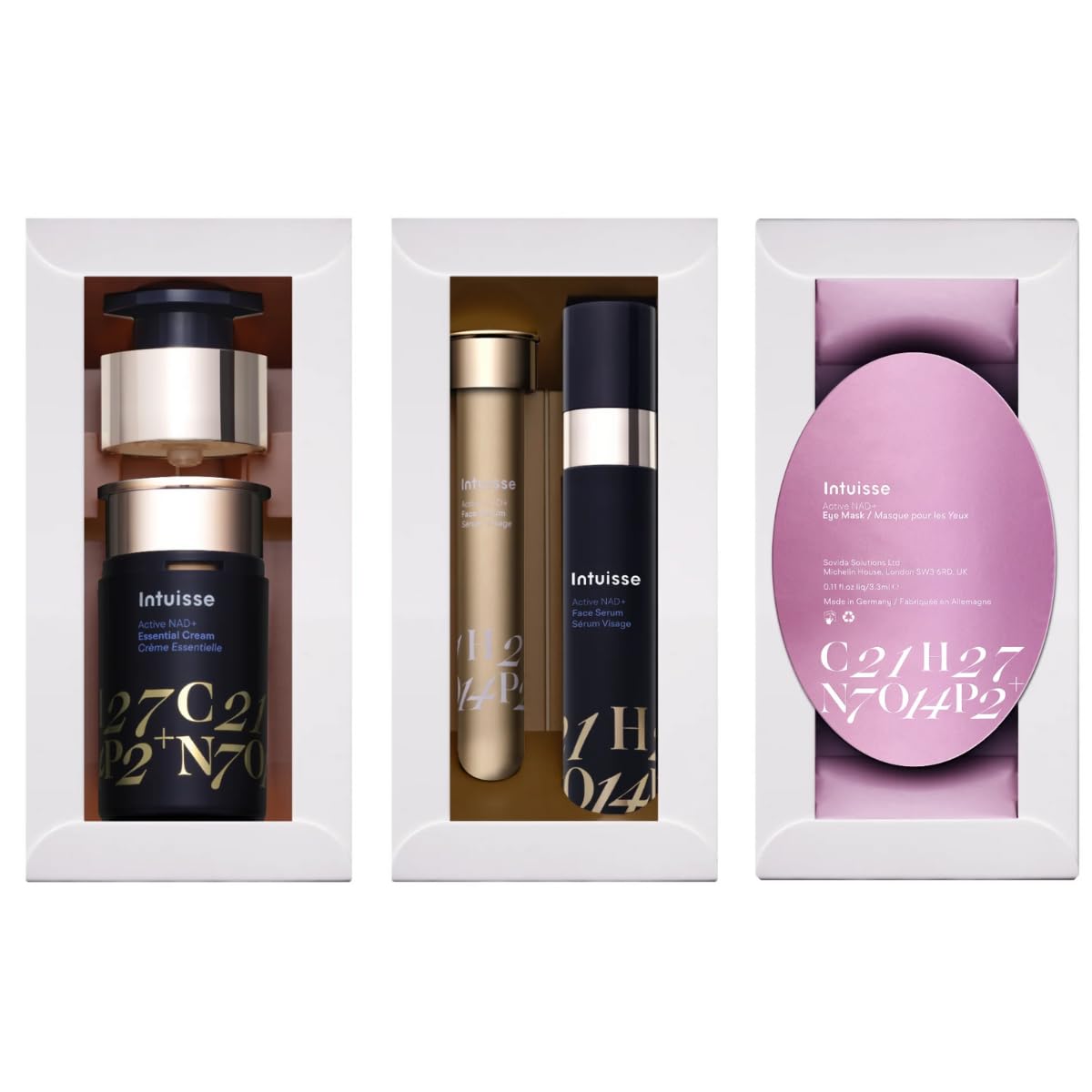 Active NAD Face Serum Kit (10ml), Active NAD Essential Cream Kit (15ml) and Active NAD Collagen Eye Mask (1 pair)
