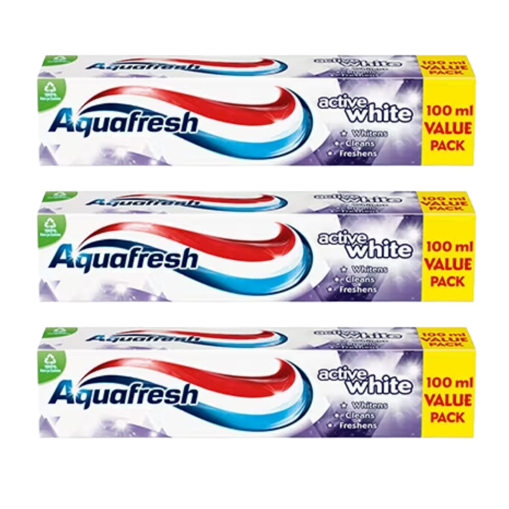 Active White Toothpaste (100ml, pack of 3) has been specially formulated to gently remove surface stains, restoring the natural whiteness of your teeth for a brighter, more confident smile. The advanced whitening formula works to effectively lift away stains caused by food, drinks and daily use, revealing a cleaner, whiter appearance without harsh abrasives. In addition to its whitening properties, Active White Toothpaste is designed to support overall oral health. It strengthens teeth and helps maintain healthy gums, thanks to its fluoride content, which provides essential protection against cavities and tooth decay. This toothpaste provides a comprehensive oral care solution by fighting plaque and promoting fresh breath, leaving your mouth feeling clean and fresh all day long. Whether you want to brighten your smile or maintain optimal oral hygiene, Active White Toothpaste is the ideal choice for your daily dental routine. With two 100ml tubes in each pack, you have a long-lasting supply of powerful protection for your teeth and gums. Choose Active White Toothpaste for a whiter, healthier smile with every use.Value pack for convenience: Each pack contains two 100ml tubes, giving you a long-lasting supply of toothpaste. Whether you're at home or on the road, you have a generous amount of toothpaste to maintain your oral health and enjoy a white, healthy smile every day. Gentle Formula: Active White Toothpaste's unique, gentle formula is designed to safely remove stains without using harsh abrasives. This effectively whitens your teeth without causing wear or damage to the enamel, making it perfect for everyday use. Long-lasting fresh breath: the toothpaste leaves your mouth feeling fresh and clean, keeping you fresh all day long. Whether you're attending a meeting or enjoying a social outing, you'll be confident knowing your breath is fresh and pleasant. Supports Healthy Gums: In addition to its whitening and cavity-fighting properties, Active White Toothpaste promotes the health of your gums. It helps reduce inflammation and protects against gum disease, keeping both your teeth and gums in optimal condition. Plaque Removal: Active white toothpaste effectively fights plaque buildup, which can lead to tartar and other oral health problems. By removing plaque, it helps maintain cleaner teeth, reduces the risk of gum disease and provides a healthier mouth. Fluoride Protection: Infused with fluoride, this toothpaste protects your teeth against cavities and decay. The fluoride strengthens tooth enamel, helps prevent cavities and ensures that your teeth stay healthy and strong with regular use. Whitening Action: Active White Toothpaste has been specially developed to gently remove surface stains caused by food, drinks and daily activities. This action helps restore the natural whiteness of your teeth, giving you a brighter and more confident smile without the need for harsh whitening agents.Active White Tandpasta 100 ml Pack van 3 – Verwijdert voorzichtig vlekken, herstelt de natuurlijke witheid en ondersteunt gezonde tanden en tandvlees met fluoridebescherming Actieve witte tandpasta (100 ml, verpakking van 3) is speciaal ontwikkeld om oppervlakkige vlekken voorzichtig te verwijderen, waardoor de natuurlijke witheid van uw tanden wordt hersteld voor een helderdere, zelfverzekerde glimlach. De geavanceerde whitening-formule werkt om vlekken veroorzaakt door voedsel, dranken en dagelijks gebruik effectief weg te tillen, waardoor een schoner, witter uiterlijk wordt onthuld zonder agressieve schuurmiddelen. Naast de whitening eigenschappen, Active White Toothpaste is ontworpen om de algehele mondgezondheid te ondersteunen. Het versterkt de tanden en helpt gezond tandvlees te behouden, dankzij het fluoridegehalte, dat essentiële bescherming biedt tegen gaatjes en tandbederf. Deze tandpasta biedt een uitgebreide mondverzorgingsoplossing door tandplak te bestrijden en een frisse adem te bevorderen, waardoor uw mond de hele dag schoon en fris aanvoelt. Of u nu uw glimlach wilt opfleuren of een optimale mondhygiëne wilt behouden, Active White Toothpaste is de ideale keuze voor uw dagelijkse tandheelkundige routine. Met twee tubes van 100 ml in elke verpakking, heb je een langdurige voorraad krachtige bescherming voor je tanden en tandvlees. Kies Active White Toothpaste voor een wittere, gezondere glimlach bij elk gebruik.Voordeelpakket voor gemak: Elke verpakking bevat twee tubes van 100 ml, waardoor u een langdurige voorraad tandpasta krijgt. Of je nu thuis of onderweg bent, je hebt een royale hoeveelheid tandpasta om je mondgezondheid te behouden en elke dag te genieten van een witte, gezonde glimlach. Zachte formule: De unieke, zachte formule van Active White Toothpaste is ontworpen om vlekken veilig te verwijderen zonder agressieve schuurmiddelen te gebruiken. Dit zorgt ervoor dat uw tanden effectief wit worden zonder slijtage of beschadiging van het glazuur te veroorzaken, waardoor het perfect is voor dagelijks gebruik. Langdurige frisse adem: de tandpasta laat je mond fris en schoon aanvoelen, waardoor je de hele dag lang fris blijft. Of u nu naar een vergadering gaat of geniet van een sociaal uitje, u zult er zeker van zijn dat u weet dat uw adem fris en aangenaam is. Ondersteunt gezond tandvlees: naast de whitening en holtebestrijdende eigenschappen, bevordert Active White Toothpaste de gezondheid van uw tandvlees. Het helpt ontstekingen te verminderen en beschermt tegen tandvleesaandoeningen, zodat zowel uw tanden als tandvlees in optimale conditie blijven. Plaque verwijdering: Actieve witte tandpasta bestrijdt effectief de opbouw van tandplak, wat kan leiden tot tandsteen en andere mondgezondheidsproblemen. Door tandplak te verwijderen, helpt het om schonere tanden te behouden, vermindert het het risico op tandvleesaandoeningen en zorgt het voor een gezondere mond. Fluoridebescherming: doordrenkt met fluoride, beschermt deze tandpasta je tanden tegen gaatjes en bederf. Het fluoride vers