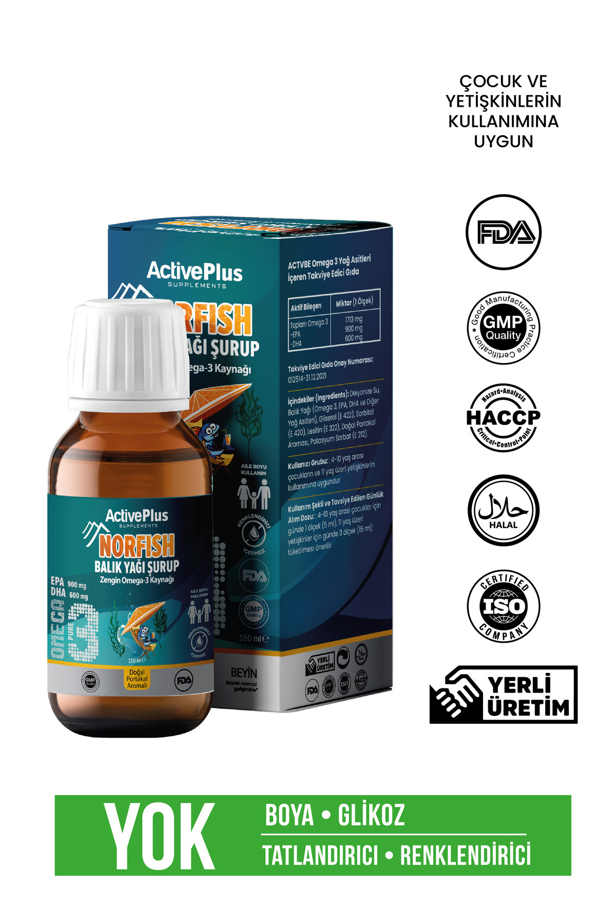 Activebee Norfish Fish Oil Syrup is a delicious fish oil syrup developed to meet the daily omega-3 needs of children and adults. Thanks to its DHA and EPA content, it supports brain, heart, and eye health, and its easy-to-consume structure is suitable for daily use.