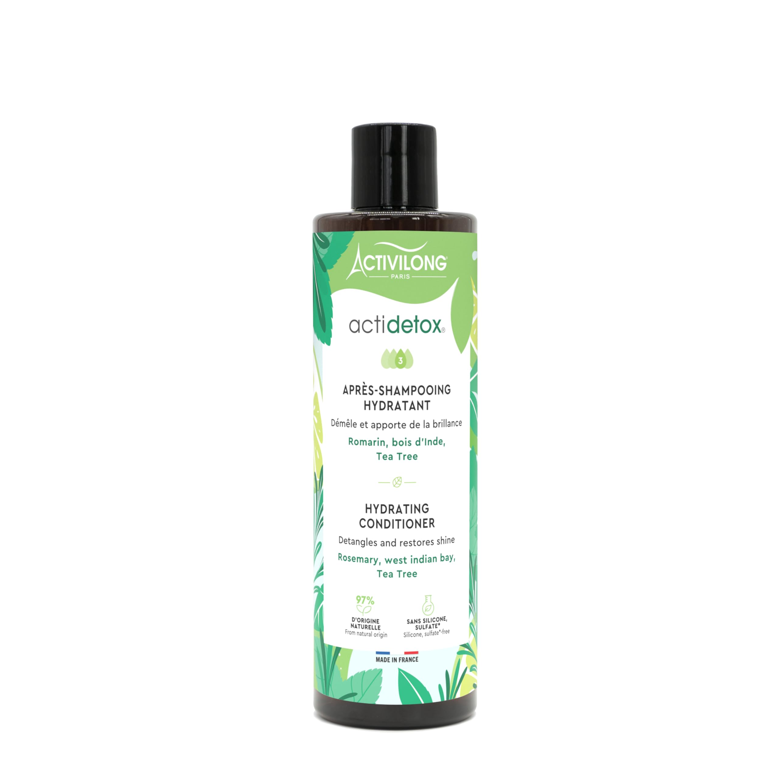 ACTIVILONG is the story of Yannick Cheffre, the founder, who since 1953 has celebrated the beauty of textured hair. Faced with the lack of products suitable for this hair, she creates her own artisanal products, rich in natural tropical active ingredients (carapate, hibiscus, avocado, coconut, cactus.). In 1983, she established her own cosmetic laboratory, giving birth to ACTIVILONG, a benchmark brand for textured hair. Actidetox Activilong Moisturizing Conditioner helps detangle your hair, while giving it luster and shine. Indeed, this curly hair treatment will deeply hydrate and nourish your hair, without leaving any residue and in just a few minutes. In addition, its composition is enriched with rosemary for hair growth, Indian wood to deeply hydrate and tea tree to soothe sensitive scalps. Made in France and composed of 97 ingredients of natural origin, this nourishing Activilong conditioner will be your best ally for healthy hair! INGREDIENTS Aqua (Water), Cetearyl Alcohol, Glycerin, Behentrimonium Chloride, Cocosnucifera (Coconut) Oil, Dipalmoylisopropyl Dimonium Methosulfate, Cetylpalmitate, Butyrospermum Parkii (Shea) Butter, Oleyl Alcohol, Potassiumsorbate, Isopropyl Alcohol, Panthenol, Limonene, Citrus Aurantium Dulcis(Orange) Peel Oil, Glyceryl Caprylate, Prunus Amygdalus Dulcis (Sweet Almond) Oil, Simmondsia Chinensis (Jojoba) Seed Oil, Borago Officinalis Seed Oil, Acetum (Vinegar), Guar Hydroxypropyltrimonium Chloride, Citric Acid, Rosmarinus Officinalis (Rosemary) Leaf Oil, Allantoin, Hydrolyzed Wheatprotein, Menthol, Hydrolyzed Sweet Almond Protein, Aloe Barbadensis Leafjuice Powder, Maltodextrin, Urtica Dioica (Nettle) Leaf Extract, Pimentaracemosa (Bay) Leaf Oil, Citrus Aurantifolia (Lime) Oil, Melaleucaalternifolia (Tea Tree) Leaf Oil, Hibiscus Sabdariffa Flower Extract, Eugenol, Tocopherol, Helianthus Annuus (Sunflower) Seed Oil, Sodium Benzoate,Rosmarinus Officinalis (Rosemary) Leaf Extract, Datem, Sunflower Seed Oilglycerides, Hydrogenated Palm Glycerides Citrate. DIRECTIONS FOR USE On damp hair washed with Actidetox shampoo, apply a generous quantity of this Activilong product to your lengths. Massage and detangle gently. Then rinse with lukewarm water. ACTIVILONG, A FRENCH BRAND: Since 1983, ACTIVILONG has established itself as the leading brand for textured hair, offering high-quality French products that are accessible to all. DIRECTIONS FOR USE: On damp hair washed with Actidetox shampoo, apply a generous amount of this Activilong product to your lengths. Massage and detangle gently. Then rinse with warm water. OPTIMAL NUTRITION AND HYDRATION: Its active ingredients work effectively to deeply nourish and soften your hair, while adding shine and luster. NATURAL INGREDIENTS: This Activilong hair treatment is composed of 98 natural ingredients and combines the benefits of rosemary, Indian wood, and tea tree to moisturize and soothe the scalp. QUICKLY AND EASILY DETANGLES HAIR: Activilong Actidetox conditioner will eliminate stubborn knots in frizzy, curly or curly hair to make everyday styling easier. ACTIVILONG, c'est l'histoire de Yannick Cheffre, la fondatrice, qui depuis 1953, célèbre la beauté des chevelures texturées. Face à l'absence de produits adaptés pour ces cheveux, elle crée ses propres produits artisanaux, riches en actifs naturels tropicaux (carapate, hibiscus, avocat, coco, cactus.). En 1983, elle établit son propre laboratoire cosmétique, donnant naissance à ACTIVILONG, une marque de référence pour les cheveux texturés. L'Après-Shampooing Hydratant Actidetox Activilong permet de démêler vos cheveux, tout en leur apportant de l'éclat et de la brillance. En effet, ce soin cheveux bouclés va venir hydrater et nourrir en profondeur vos cheveux, et ce, sans laisser de résidu et en quelques minutes seulement. De plus, sa composition est enrichie en romarin pour la pousse des cheveux, en bois d'Inde pour hydrater en profondeur et en tea tree pour apaiser les cuirs chevelus sensibles. Fabriqué en France et composé à 97 d'ingrédients d'origine naturelle, cet après-shampooing nourrissant Activilong sera votre meilleur allié pour des cheveux en bonne santé ! INGRÉDIENTS Aqua (Water), Cetearyl Alcohol, Glycerin, Behentrimonium Chloride, Cocosnucifera (Coconut) Oil, Dipalmoylisopropyl Dimonium Methosulfate, Cetylpalmitate, Butyrospermum Parkii (Shea) Butter, Oleyl Alcohol, Potassiumsorbate, Isopropyl Alcohol, Panthenol, Limonene, Citrus Aurantium Dulcis(Orange) Peel Oil, Glyceryl Caprylate, Prunus Amygdalus Dulcis (Sweet Almond)Oil, Simmondsia Chinensis (Jojoba) Seed Oil, Borago Officinalis Seed Oil,Acetum (Vinegar), Guar Hydroxypropyltrimonium Chloride, Citric Acid,Rosmarinus Officinalis (Rosemary) Leaf Oil, Allantoin, Hydrolyzed Wheatprotein, Menthol, Hydrolyzed Sweet Almond Protein, Aloe Barbadensis Leafjuice Powder, Maltodextrin, Urtica Dioica (Nettle) Leaf Extract, Pimentaracemosa (Bay) Leaf Oil, Citrus Aurantifolia (Lime) Oil, Melaleucaalternifolia (Tea Tree) Leaf Oil, Hibiscus Sabdariffa Flower Extract, Eugenol, Tocopherol, Helianthus Annuus (Sunflower) Seed Oil, Sodium Benzoate,Rosmarinus Officinalis (Rosemary) Leaf Extract, Datem, Sunflower Seed Oilglycerides, Hydrogenated Palm Glycerides Citrate. MODE D'EMPLOI Sur cheveux humides et lavés avec le shampooing Actidetox, appliquez en quantité généreuse ce produit Activilong sur vos longueurs. Massez et démêlez délicatement. Rincez ensuite à l'eau tiède. ACTIVILONG, UNE MARQUE FRANÇAISE : Depuis 1983, ACTIVILONG a su s'imposer pour devenir aujourd'hui la marque de référence des cheveux texturés en proposant des produits français de haute qualité et accessibles à toutes. CONSEILS D'UTILISATION : Sur cheveux humides et lavés avec le shampooing Actidetox, appliquez en quantité généreuse ce produit Activilong sur vos longueurs. Massez et démêlez délicatement. Rincez ensuite à l'eau tiède. UNE NUTRITION ET HYDRATATION OPTIMALES : Ses ingrédients actifs agiss
