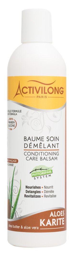 ACTIVILONG is the story of Yannick Cheffre, the founder, who has been celebrating the beauty of textured hair since 1953. Faced with the lack of suitable products for this type of hair, she created her own handcrafted products, rich in natural tropical active ingredients (castor oil, hibiscus, avocado, coconut, cactus, etc.). In 1983, she established her own cosmetic laboratory, giving birth to ACTIVILONG, a leading brand for textured hair. Activilong designs treatments perfectly suited to all hair types, thanks to a meticulous selection of completely pure natural oils and extracts. Made in France, 100 pure castor oil, particularly rich in beneficial properties, deeply moisturizes hair thanks to its fatty acid content. Fortifying and revitalizing, this sealing oil also promotes hair growth by stimulating the scalp. Hair is supple, soft, and full of vitality! Let yourself be charmed by this plant-based oil offering rich benefits for your hair! INGREDIENTS Activilong Aloe and Shea Detangling Conditioner 250 ml DIRECTIONS Distribute evenly and generously through damp hair. Do not rinse. See moreACTIVILONG, A FRENCH BRAND: Since 1983, ACTIVILONG has established itself as the leading brand for textured hair, offering high-quality French products accessible to all. DIRECTIONS FOR USE: Divide your hair into sections, then apply the Activilong detangling balm, starting at the ends and working towards the scalp to prevent tangles and breakage. OPTIMAL NOURISHMENT: This detangling hair balm deeply nourishes damaged hair, restructures it, and protects it. Your hair regains body and volume from the very first use. NATURAL INGREDIENTS: This Activilong hair treatment, with its phytorepair system, combines the benefits of aloe and pure shea butter with moisturizing and repairing properties for revitalized and supple hair. Paraben-free, silicone-free, and mineral oil-free. SOFTENS AND DETANGLES HAIR: This detangling conditioning balm, with its light and non-greasy texture, quickly detangles dry and damaged hair, making it easier to style and leaving hair soft and frizz-free.ACTIVILONG - Baume Soin Démêlant - Aloès Et Karité - Sans Rinçage - Cheveux Secs Et Abîmés - Nourrit - Phytorepair System - Sans Parabène, Ni Silicone, Ni Huile Minérale - Made In France - 250mlDESCRIPTION DU PRODUIT DESCRIPTION DU PRODUIT ACTIVILONG, c'est l'histoire de Yannick Cheffre, la fondatrice, qui depuis 1953, célèbre la beauté des chevelures texturées. Face à l'absence de produits adaptés pour ces cheveux, elle crée ses propres produits artisanaux, riches en actifs naturels tropicaux (carapate, hibiscus, avocat, coco, cactus.). En 1983, elle établit son propre laboratoire cosmétique, donnant naissance à ACTIVILONG, une marque de référence pour les cheveux texturés. Activilong conçoit des soins parfaitement adaptés à tous les types de cheveux, et ce, grâce à une sélection méticuleuse d'huiles et d'extraits naturels totalement purs. Fabriqué en France, l'huile de carapate 100 pure, particulièrement riche en propriétés bienfaitrices, permet d'hydrater les cheveux en profondeur, grâce aux acides gras qu'elle contient. Fortifiante et revitalisante, cette huile scellante favorise aussi la croissance capillaire en stimulant le cuir chevelu. Les cheveux sont souples, doux et pleins de vitalité ! Laissez-vous charmer par cette huile végétale offrant de riches bienfaits pour votre chevelure ! INGRÉDIENTS Activilong Baume Soin Demelant Aloes Karité 250 ml MODE D'EMPLOI Répartir uniformément en quantité suffisante sur cheveux humides. Ne pas rincer. Voir plusACTIVILONG, UNE MARQUE FRANÇAISE : Depuis 1983, ACTIVILONG a su s'imposer pour devenir aujourd'hui la marque de référence des cheveux texturés en proposant des produits français de haute qualité et accessibles à toutes. CONSEILS D'UTILISATION : Divisez vos cheveux en plusieurs sections, puis appliquez le baume démêlant Activilong en commençant par les pointes vers le cuir chevelu pour éviter les nœuds et la casse. UNE NUTRITION OPTIMALE : Ce baume démêlant cheveux permet de nourrir en profondeur les cheveux abîmés, de les restructurer et de les protéger. Vos cheveux retrouvent corps et volume dès la première utilisation. INGRÉDIENTS NATURELS : Ce soin Activilong cheveux, phytorepair system, associe les bienfaits de l'aloès et du karité pure aux bienfaits hydratants et réparateurs pour des cheveux revitalisés et souples. Sans parabène, ni silicone, ni huile minérale. ASSOUPLIT ET DÉMÊLE LES CHEVEUX : Ce baume soin démêlant, à la texture légère et non grasse, permet de démêler rapidement les cheveux secs et abîmés afin de faciliter le coiffage pour des cheveux assouplis et sans frisottis.
