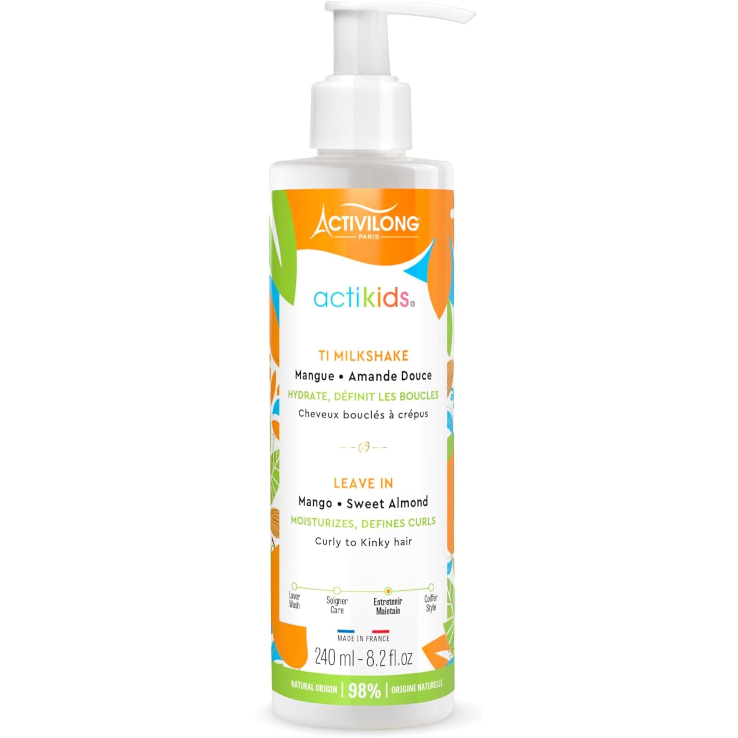 ACTIVILONG - Ti Milkshake Leave In Actikids - Sans Rin age - Cheveux Boucl s Cr pus - D s 3 ans - Definit Et Hydrate - Ingr dients Naturels - Vegan - Parfum Hypoallerg nique - Made In France - 240ml Unique