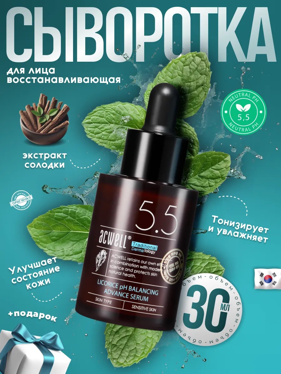 | Комплектация | Восстанавливающая сыворотка с экстрактом солодки Acwell Licorice pH Balancing Advance Serum 30 мл |