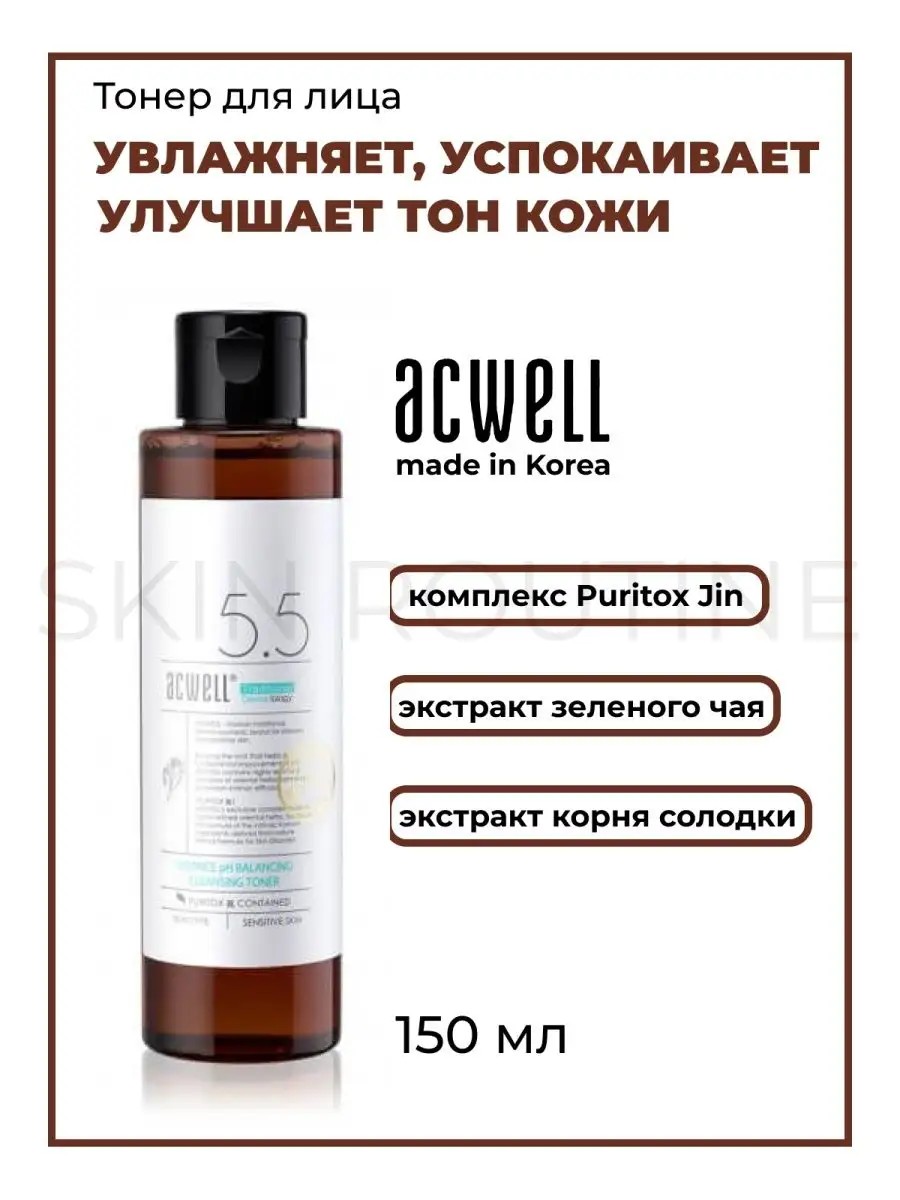 Слабокислотный тонер для лица Licorice PH Balancing Cleansing Toner от корейского бренда Acwell - это косметическое средство, которое глубоко увлажняет кожу, очищает остатки макияжа и эффективно успокаивает воспаления, снимает раздражение и покраснения. Корейский тонер помогает нормализовать pH кожи, оказывает легкое отшелушивающее действие. После использования тоника кожа становится гладкой, плотность и эластичность повышается. В составе экстракт пиона и высокая концентрация 10% экстракта корня солодки - осветляющие компоненты, работают на улучшение тона, против пятен пигментации и следов постакне, возвращают ей сияние. Токоферол (Витамин Е) - профилактический антивозрастной эффект, разглаживает мимические морщины. Тоник, как мист или лосьон, можно использовать 2 раза в день (утро и вечер) после очищения. Увлажняющий тонер с пенкой для умывания, сывороткой и кремом может составить Ваш базовый уход за кожей. Также рекомендуем дополнять Ваш уход (в любое время года) SPF солнцезащитным кремом для защиты Вашей кожи. Подойдет и чувствительной коже.