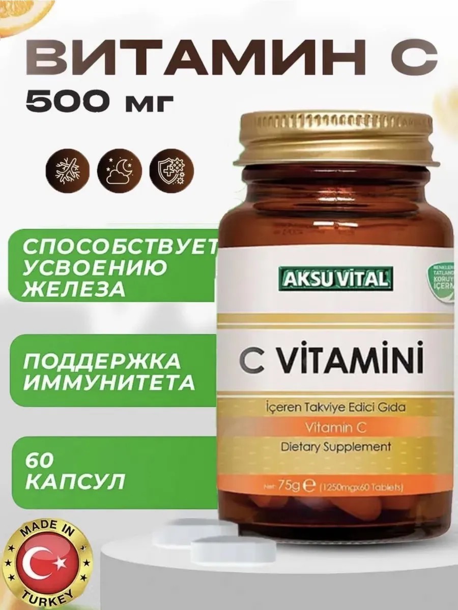 Adam_Store Витамин C для иммунитета 500 мг 60 таблеток Aksu Vital