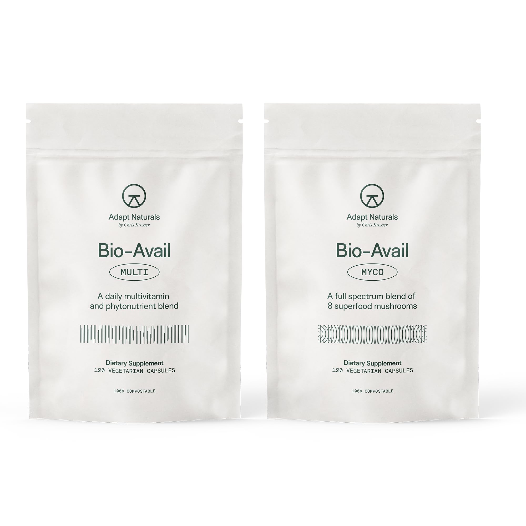 Adapt Naturals Energy Immune Support Bundle Power your day with this synergistic duo of Bio-Avail Multivitamin and Bio-Avail Myco Mushroom Complex. Formulated for 30 days of comprehensive support, this bundle fuels energy, focus, immunity, and overall vitality. The multivitamin fills key nutrient gaps with highly absorbable vitamins and minerals, while the mushroom complex delivers eight organic fruiting body extracts like Lion's Mane and Reishi for cognitive, immune, and cardiovascular support. Rooted in ancestral wisdom and backed by science, this clean, convenient combo helps you thrive from the inside out.Comprehensive, Clean Convenient: Both supplements are designed for easy daily use with meals. No synthetic fillers or grains—just clean, functional ingredients that support your body's core systems and help you feel your best every day. Ancestral Wisdom Meets Modern Science: Multivitamin nutrients reflect ancestral dietary principles. Mushrooms are harvested from real fruiting bodies and natural substrates—not lab-grown mycelium—offering maximum bioactivity and benefits. Bio-Avail Myco Mushroom Complex: Features a full-spectrum blend of 8 organic mushroom extracts—Reishi, Chaga, Lion's Mane, Cordyceps, Shiitake, Maitake, Tremella, and Turkey Tail. Promotes immune health, cognitive performance, cardiovascular wellness, and natural vitality. Bio-Avail Multivitamin: Packed with essential vitamins, minerals, and phytonutrients, including Vitamin A, B-complex, C, D, E, K1, magnesium, zinc, and biotin. Designed for easy absorption and to fill nutrient gaps in modern diets. Daily Wellness Duo for Energy, Focus Immunity: Includes 1 bottle of Adapt Naturals Bio-Avail Multivitamin and 1 bottle of Bio-Avail Myco Mushroom Complex (30-day supply each). A synergistic bundle to support nutrient intake, immune function, energ, and mental clarity.