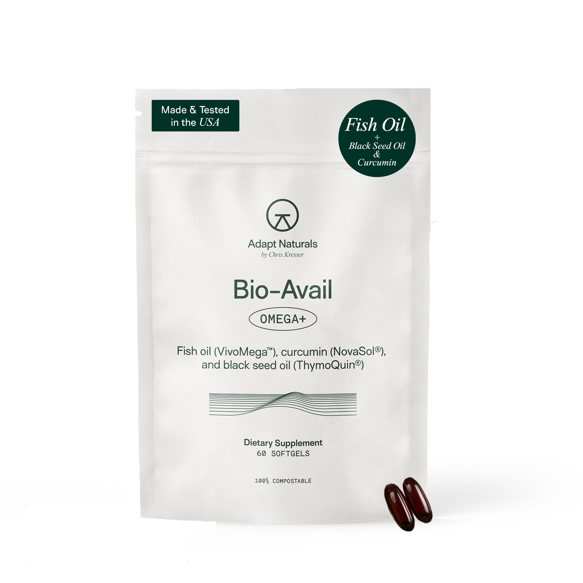 IMPORTANT: If you are taking blood thinner medication, consult a healthcare practitioner before using this omega 3 fish oil supplement to ensure safety and avoid potential interactions. RECOMMENDED USE: Take two easy to swallow omega 3 softgels daily with food for optimal absorption. For those with a sensitive digestive system, we recommend taking one softgel twice a day to support comfort and consistent nutrient intake. HIGHEST QUALITY STANDARDS: Formulated with highest quality fish oil supplements for women and men on the market, exceeding international standards for purity and freshness, with exceptionally low levels of peroxides, heavy metals, dioxins, and PCBs. Certified by Friend of the Sea and MarinTrust. SUPPORTS BODY MIND HEALTH WELLNESS: Bio-Avail Omega delivers essential nutrients from fish oil omega 3 fatty acids to support joints, muscles, cognitive function, mood, heart, metabolic, and immunity. EVIDENCE-BASED, QUALITY INGREDIENTS: Adapt Naturals Bio-Avail omega 3 supplement is a blend of ultra-pure fish oil and the most bioavailable forms of curcumin and black seed oil. Contains 510 mg of EPA and 330 mg of DHA.