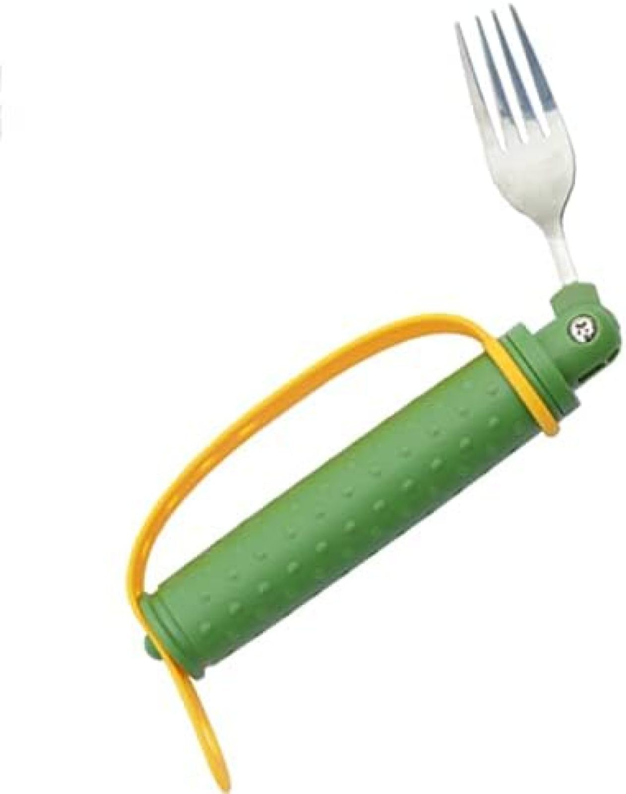 Parkinson Forks - Adaptive Eating Aid for Elderly, Parkinson, Arthritis Handicap - Anti-Shake Tableware for Limited Wrist Range of Motion ?Features: - Adjustable rotating Cutlery with a comfortable and soft grip for a more convenient food position. - Forks facilitate self-feeding independent dining for those with reduced upper extremity control decreased flexibility strength in the shoulder, arm, forearm, wrist hand - Makes grasping and holding easier for those with decreased hand strength, weak grip, arthritis, carpal tunnel syndrome, and other conditions that impair hand mobility and decrease wrist range of motion. ?Specification: - Product Name: Auxiliary Forks - Function: Help patients to eat and drink on their own. - Material: Stainless Steel silicone ABS ?Package list: 1 Disabled Utensil?Great for hand spasms, finger deformation, finger trembling, grip loss, elderly, Parkinsonian, children, hand injuries or people with disabilities. ?Makes grasping and holding easier for those with decreased hand strength, weak grip, arthritis, carpal tunnel syndrome, and other conditions that impair hand mobility and decrease wrist range of motion. ?Fork facilitate self-feeding independent dining for those with reduced upper extremity control decreased flexibility strength in the shoulder, arm, forearm, wrist hand. ?Adjustable rotating cutlery fork with a comfortable and soft grip for a more convenient food position. ?Material:ABS Silicone Stainless Steel. Made of food-grade high-quality stainless steel, non-toxic, no odor.