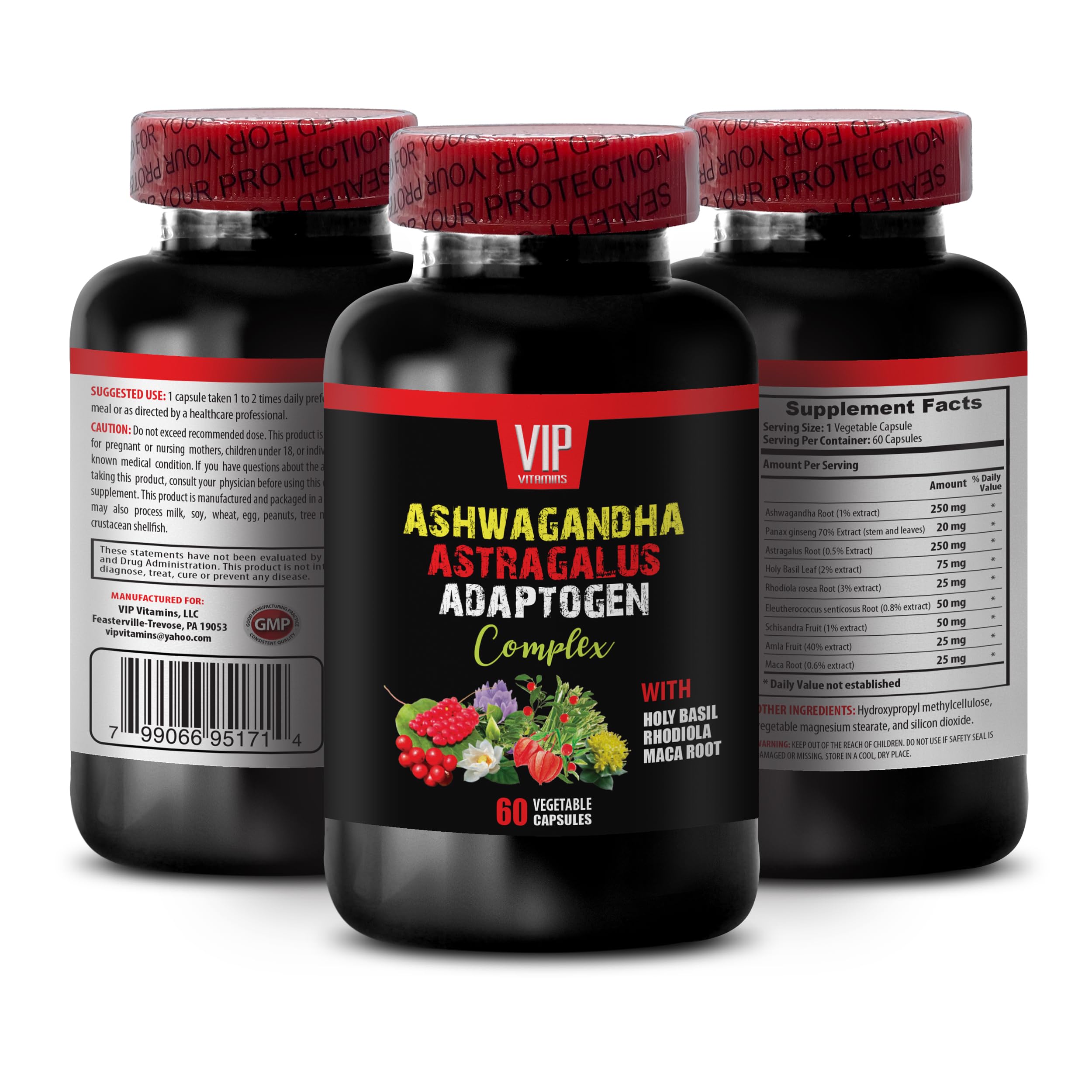 ADAPTOGEN COMPLEX Capsules with ASHWAGANDHA, ASTRAGALUS, Holy Basil, Rhodiola, Maca Root, Panax Ginseng - Enhance Focus and Cognitive Function, Natural Energy Booster, immune support, 1 Bottle, 60 Capsules Introducing our potent Adaptogen Complex with a blend of premium herbs to support your overall well-being and vitality. This carefully crafted formula combines the power of Ashwagandha, Astragalus, Holy Basil, Rhodiola, and Maca Root, delivering a synergistic blend of adaptogenic herbs that work harmoniously to enhance your body's natural resilience and promote a balanced lifestyle. Unleash your inner potential with Ashwagandha, a renowned adaptogen known for its ability to promote stress relief and provide a gentle boost of energy. By supporting a healthy response to stress, it helps you stay focused and maintain a positive outlook throughout the day. Astragalus, a powerful herb in traditional Chinese medicine, complements the formula by supporting immune function and promoting overall vitality. It assists your body in adapting to daily challenges, allowing you to thrive in the face of life's demands. Holy Basil, also known as Tulsi, is revered for its calming properties. It helps soothe the mind and supports a balanced mood, promoting a sense of tranquility and well-being. Experience a renewed sense of calm as you navigate your daily routine. Rhodiola, a time-tested adaptogenic herb, boosts stamina and supports physical endurance, making it an ideal addition to your active lifestyle. By optimizing your body's stress response, Rhodiola aids in maintaining energy levels and resilience when you need it most. To complete this exceptional blend, we've included Maca Root, celebrated for its energizing properties and its potential to support hormonal balance. Experience a natural uplift in vitality and enjoy increased overall well-being.HOLISTIC WELL-BEING SUPPORT: With its carefully selected blend of adaptogenic herbs, our complex offers comprehensive support for your overall well-being, helping you lead a balanced and fulfilling life. ENCOURAGES FOCUS AND CLARITY: By supporting clarity and alertness, our Adaptogen Complex helps you maintain focus, aiding productivity and cognitive performance. NATURAL UPLIFT IN VITALITY: Experience a revitalizing effect on your overall vitality and enjoy a renewed sense of energy and vigor. PROMOTES HORMONAL BALANCE: Maca Root, a powerful ingredient in our complex, supports hormonal equilibrium, helping you maintain optimal well-being throughout the month. SUPPORTS IMMUNE FUNCTION: Astragalus, a potent herb in traditional medicine, helps bolster your immune system, keeping you strong and healthy year-round. ENHANCES PHYSICAL ENDURANCE: Rhodiola, supports physical stamina and endurance, helping you push your limits and achieve your fitness goals. BOOSTS MOOD AND EMOTIONAL WELL-BEING: Find balance and tranquility as Holy Basil and other key herbs in our blend help uplift your mood and promote a sense of well-being. SUPPORTS STRESS RELIEF: By promoting a healthy response to stress, this complex helps you stay calm, focused, and composed, even during demanding situations. PROMOTES ENERGY AND VITALITY: Experience a gentle and sustained boost in energy levels, allowing you to stay active and productive throughout the day. ENHANCES RESILIENCE: Our Adaptogen Complex helps support your body's natural resilience, enabling you to better adapt to the challenges of everyday life.