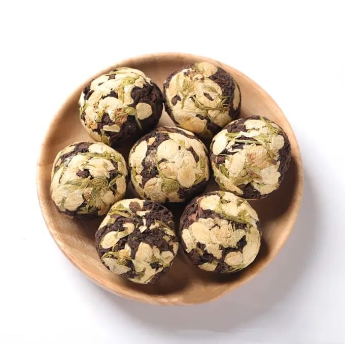 DESCRIPTION DU PRODUIT 8 Boules de thé noir au Jasmin, joliment présenté dans un tube en verre Poids 40 Gr Diamètre 2,2 cm