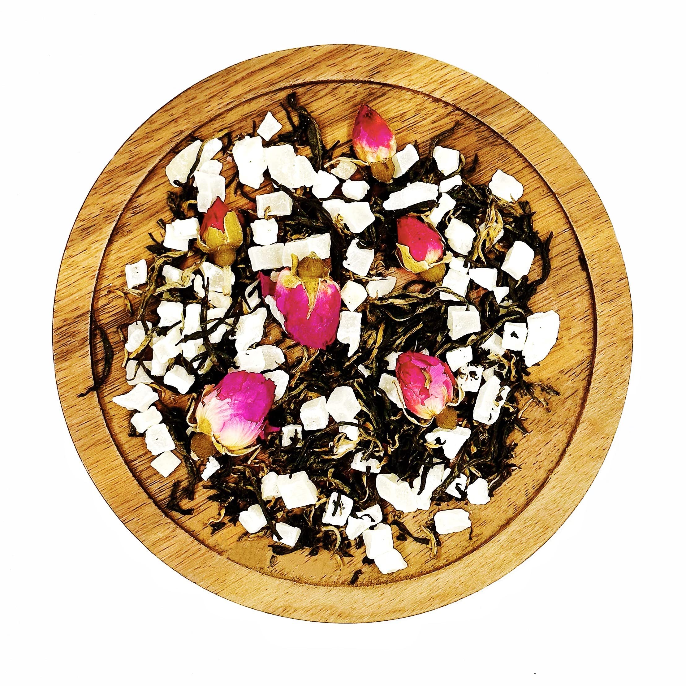 Add Fruits Black Tea Rose & Peach Black Tea Ingredients: whole roses white peaches and fine black tea 100% vegetable