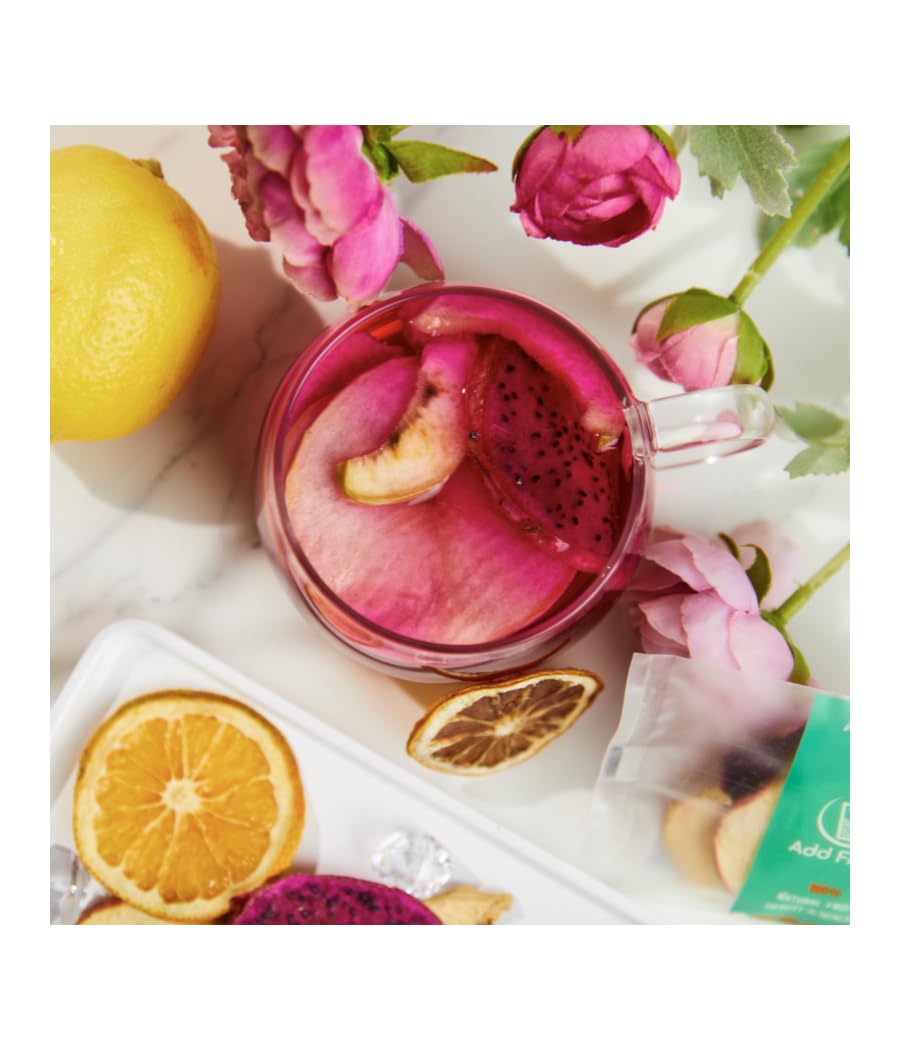 Add Fruits Le Délicat Détox, Infusion de Fruits, 180g, Fruit du Dragon Pêche Blanche Citron Pomme, 12 Sachets, Sans Additif