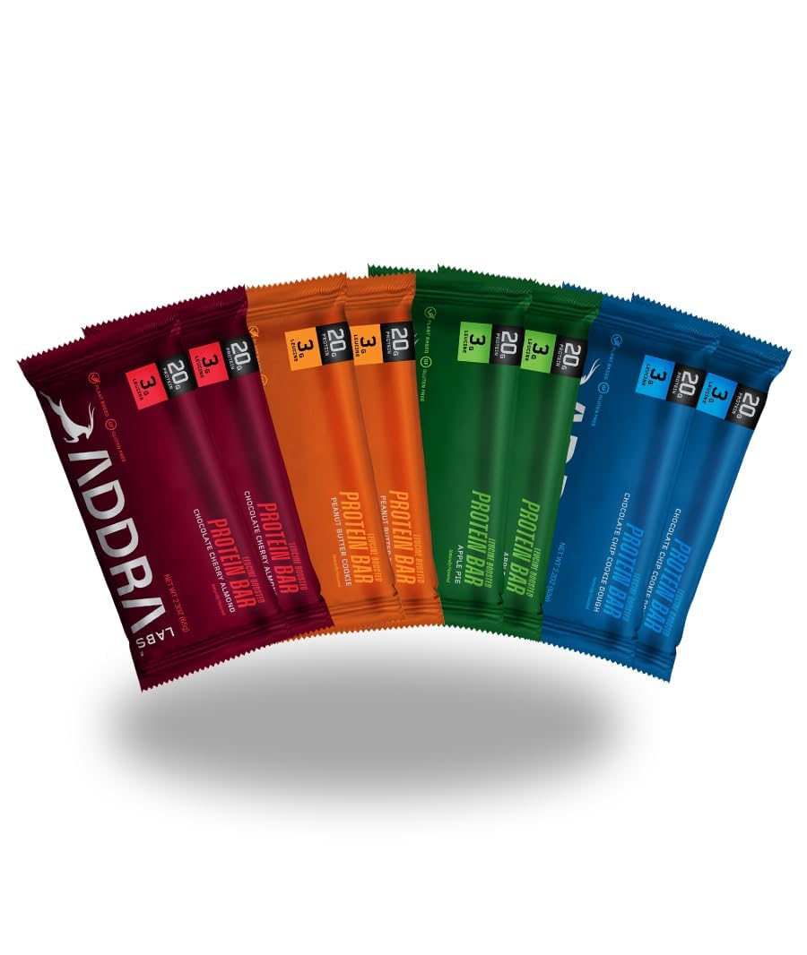 ADDRA Endurance Protein Bars – Built for Athletes Who Go the Distance Meet the ADDRA Endurance Protein Bar — the first plant protein bar created specifically for endurance athletes like runners, cyclists, and triathletes. Each pack includes 8 high-protein bars, delivering 20g plant protein and leucine boosted to 3g to power faster recovery and helps boost performance over time. While most bars are made for the gym, ADDRA is made for endurance. Backed by sports nutrition science, our BCAA protein bar formula helps rebuild muscle, reduce soreness, and restore strength so you can train again tomorrow — stronger than before. Crafted with real fruit and nut ingredients you can see, every vegan, gluten-free, low sugar protein bar offers a soft, uncoated texture that never melts in your pocket or gear bag. It's the perfect post workout recovery bar, or healthy protein snack for athletes on the move. This isn't just another protein bar — it's endurance recovery food designed for real athletes. Whether you're grinding through a century ride, logging marathon miles, or tackling brick sessions, ADDRA gives your body what it needs to recover so you can keep going farther, faster, and stronger. FLAVORS BUILT FOR PERFORMANCE (AND TASTE) Peanut Butter Cookie– Rich roasted peanut flavor with smooth vanilla notes and real peanut chunks in every bite. Classic taste, endurance-grade recovery. Apple Pie– Real apple pieces and cinnamon deliver cozy, homemade flavor in a vegan protein bar that powers your comeback. Chocolate Chip Cookie Dough– Soft, doughy texture with real chocolate chips. The low sugar protein bar that makes recovery feel like dessert. Chocolate Cherry Almond– Deep cocoa balanced with tart cherries and almonds for a rich, satisfying bite that rebuilds your strength. Each flavor shares the same science-backed formula — 20g plant protein leucine boosted to 3g, and a soft, mess-free texture for easy on-the-go recovery. ? WHY ATHLETES CHOOSE ADDRA 20g complete plant protein leucine boosted to 3gfor optimal muscle recovery Vegan, gluten-free, soy-free, low sugar— the ultimate recovery bar Uncoated, soft texture— no sticky coatings or melting mess Compact and portable— fits cycling jerseys, running belts, and gym bags Designed for endurance athletes— runners, cyclists, and triathletes who train hard every day ADDRA is more than a protein snack for athletes — it's the next evolution of endurance recovery food. Every bite helps you rebuild what you've pushed, keeping you ready for the next mile, climb, or race.✓ READY FOR ANYWHERE, ANYTIME RECOVERY – Compact vegan energy bar fits easily in your jersey, belt, or gym bag. Perfect after training sessions, long rides, or tough workouts. Soft, satisfying, and mess-free—your healthy protein snack for athletes on the move. ✓ INGREDIENTS YOU CAN SEE AND TRUST – Made with real fruit and nuts and natural flavors with no unhealthy coatings. A vegan BCAA snack that gives your body what it needs to boost recovery. Gluten-free, low sugar, and crafted for those who value pure endurance recovery food. ✓ SCIENCE-BACKED RECOVERY NUTRITION – Research shows endurance athletes need higher protein for repair and adaptation. ADDRA's leucine boosted bar supports muscle recovery between sessions and helps boost performance over time. Compact, uncoated, and seriously delicious. ADD TO CART now. ✓ BUILT FOR ENDURANCE, NOT JUST THE GYM – Designed for triathletes, cyclists, and runners who train relentlessly. 20g plant protein plus 3g of the BCAA, leucine, accelerates muscle repair after long rides or workouts. Vegan, low sugar, gluten-free protein bar for real endurance recovery. ✓ DISCOVER EVERY FLAVOR, MASTER EVERY WORKOUT – Get all four ADDRA Endurance Protein Bar flavors—2x Peanut Butter Cookie, 2x Apple Pie, 2x Chocolate Chip 2x Cookie Dough, and 2x Chocolate Cherry Almond. 20g plant protein leucine boosted to 3g per bar to help recovery after every ride or run.
