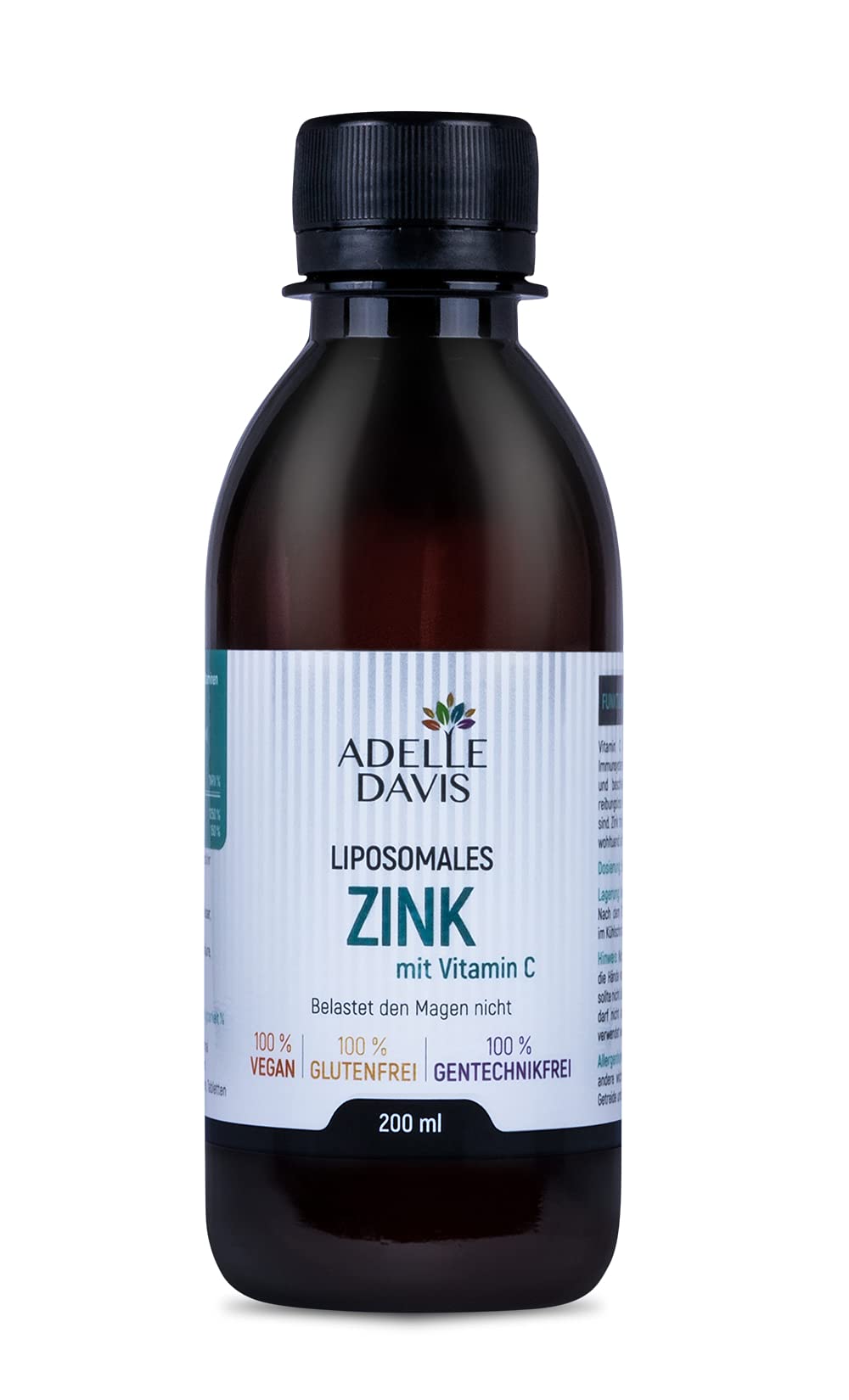 Adelle Davis Liposomal zinc 15mg with vitamin C 1000mg 200ml high-dose liquid formula with sunflower lecithin vegan non-GMO soy and gluten free