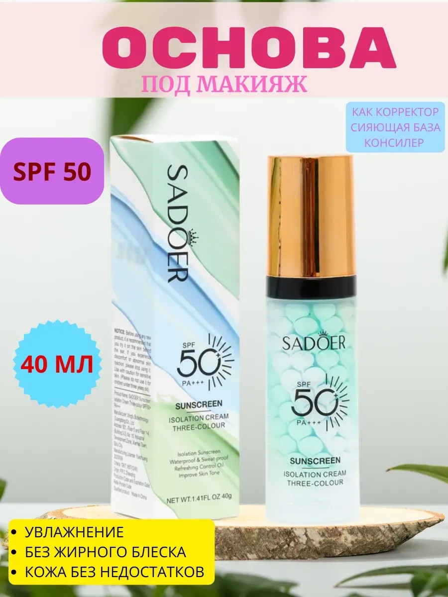 Трехцветная база под макияж с SPF 50+ – ровный тон и защита кожи в любое время года.