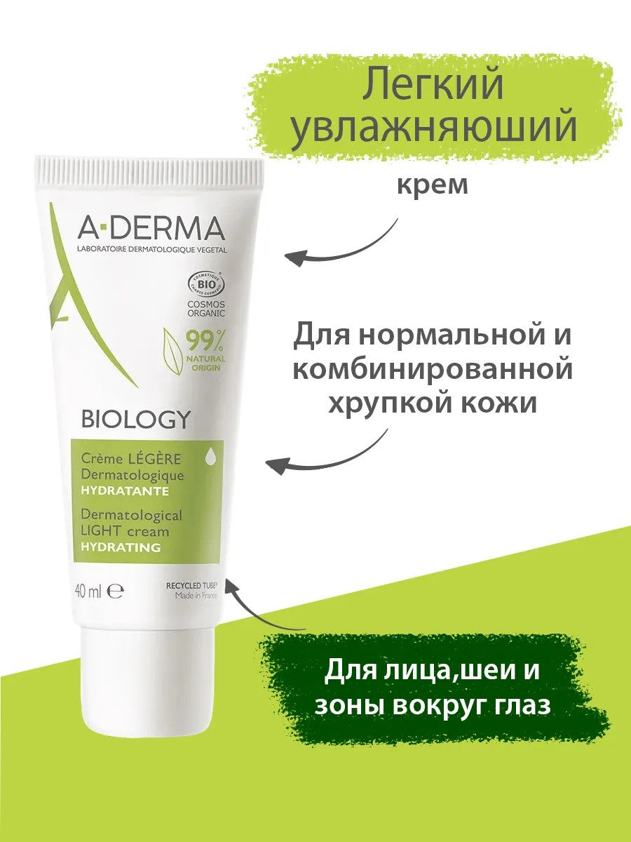 А-Дерма Биолоджи Крем легкий увлажняющий для хрупкой кожи 40 мл