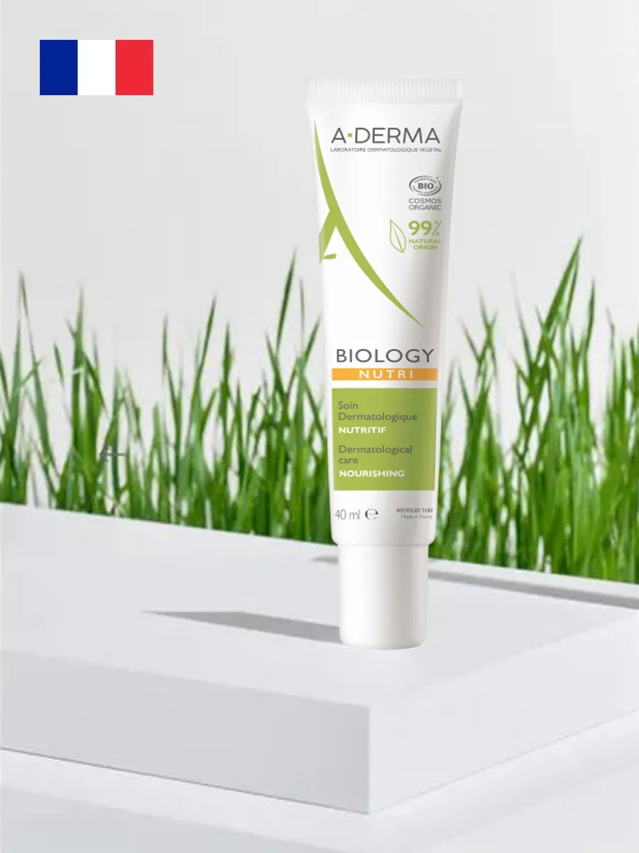 Looking for the perfect nourishing cream for your very dry and fragile facial skin? A-DERMA BIOLOGY NUTRY is your perfect choice! Made in France, this dermatological cream is specially designed to nourish, restore balance, and protect fragile facial skin. The cream's unique formula includes organic safflower oil and Rhealba Bio Oat Sap—the star active ingredient in the BIOLOGY line. This innovative treatment intensely nourishes the skin, protects against dryness, and provides 24-hour hydration. Localized dryness and itching become less noticeable, and skin acquires a healthy, well-groomed appearance. This dermatologically certified and organic cream contains only essential ingredients for optimal tolerance. Free of fragrances and essential oils, it is tested on dry skin prone to atopic eczema and is suitable for use on the face and eye contour. The cream's light, enveloping texture makes it ideal both on its own and in combination with other BIOLOGY products. Organically grown Rhealba oats provide additional nourishing properties. Apply morning and/or evening to cleansed face and neck. Can be used as a makeup base. A-DERMA BIOLOGY NUTRY is your reliable partner in caring for fragile facial skin. Try it today and feel the difference!
