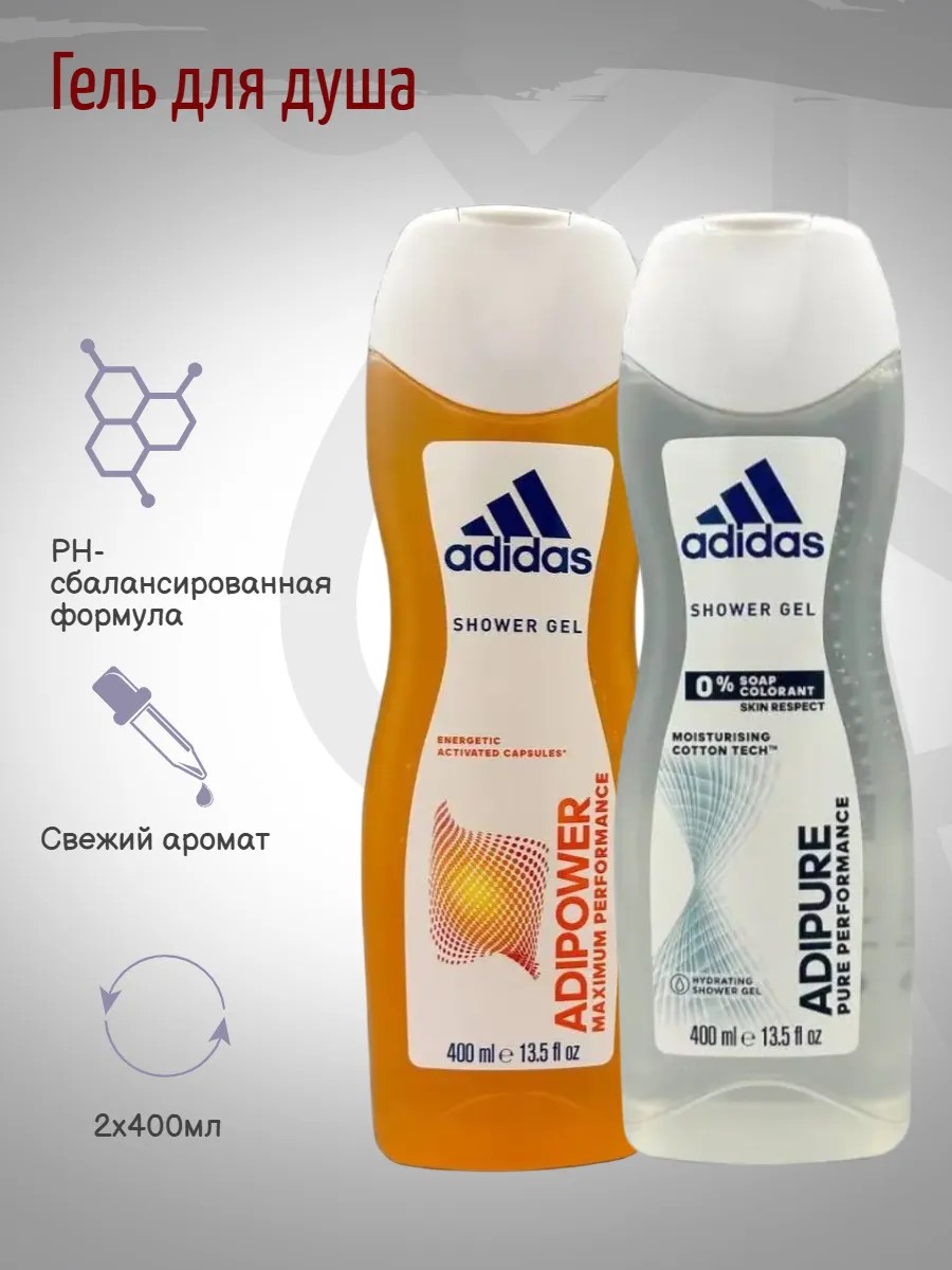 adidas Набор Adipure,Adipower Гель для душа, 2x400 мл
