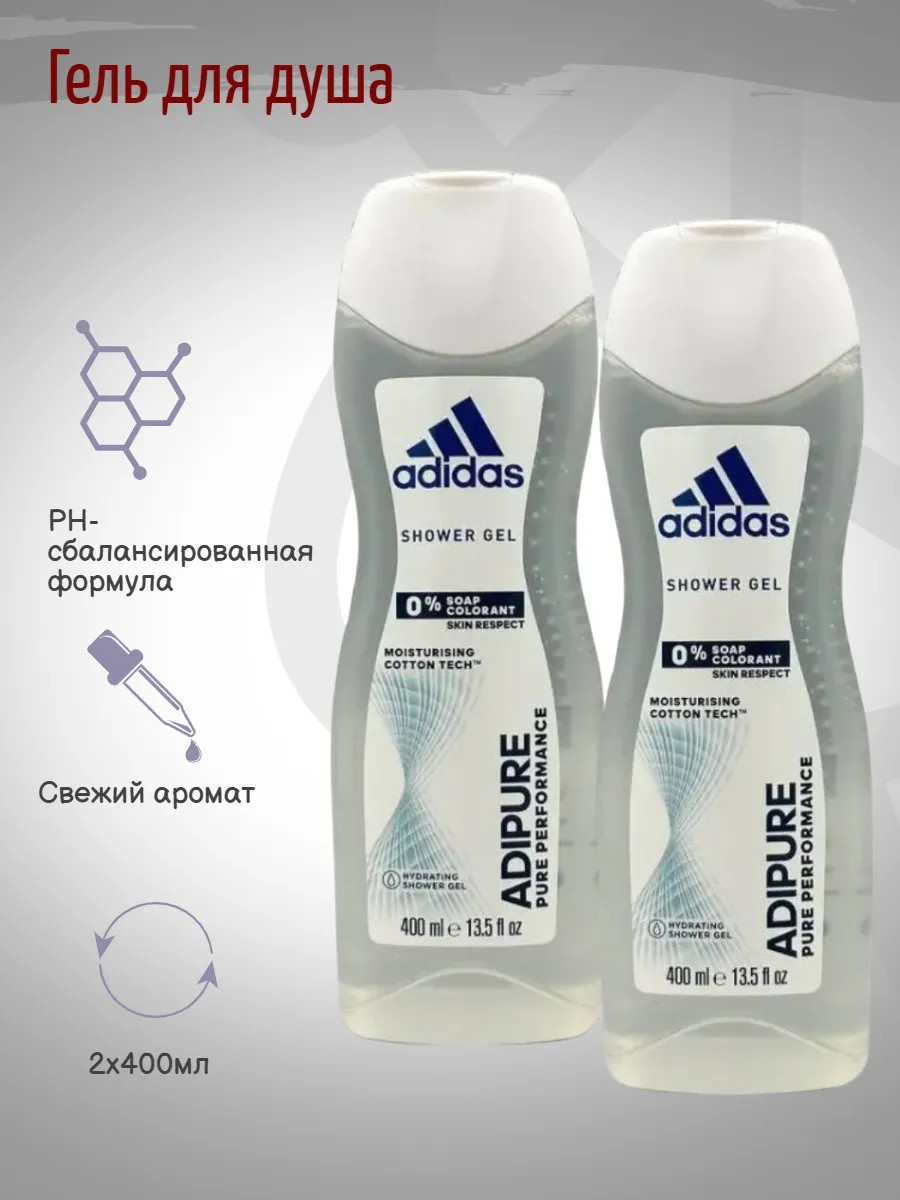 КомплектацияAdidas Adipure Гель для душа купить женские 400 мл 2шт