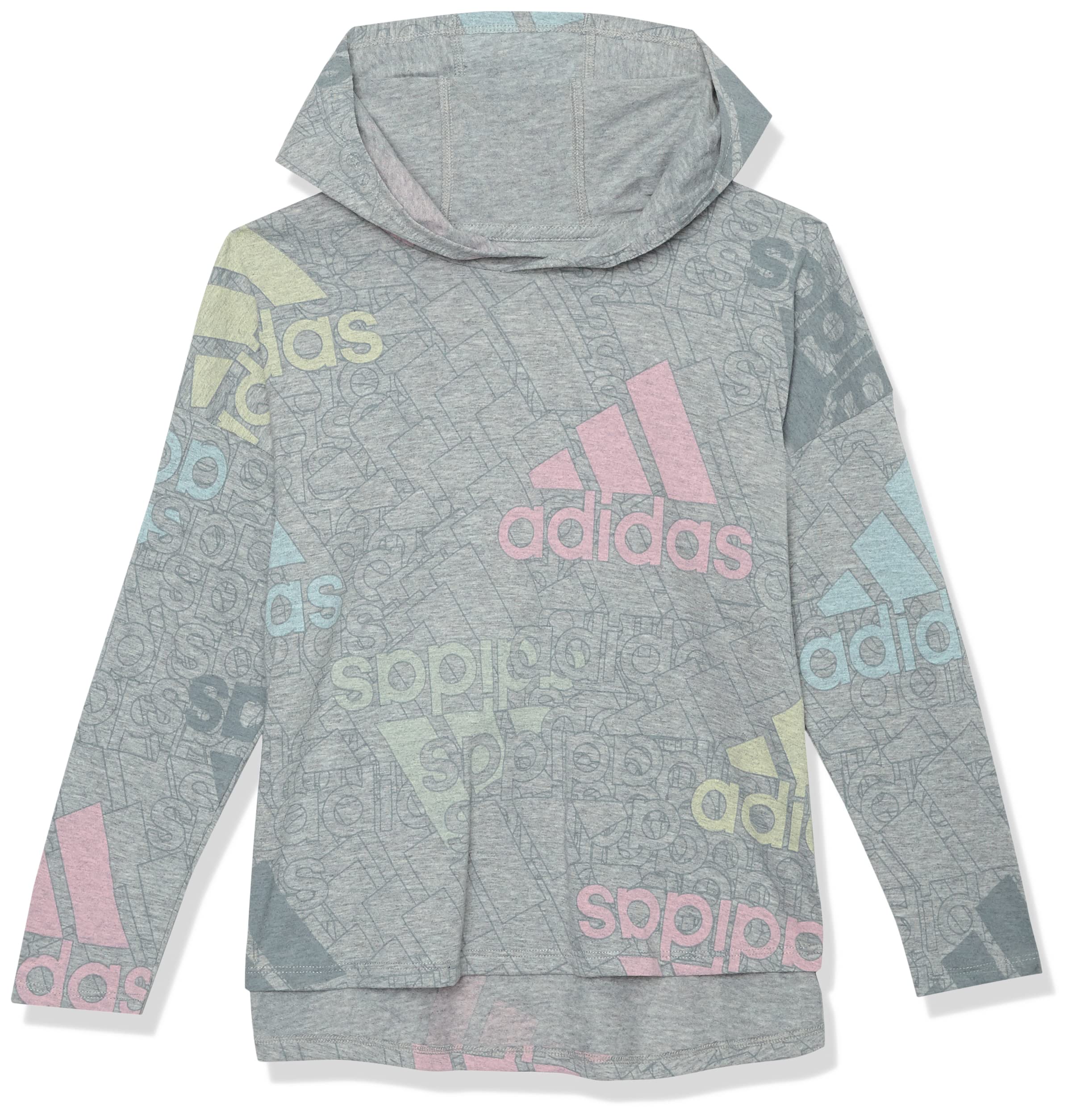adidas Girls' Long Sleeve Cotton Hooded Graphic T-Shirt, Black with Multicolor, Large (14)