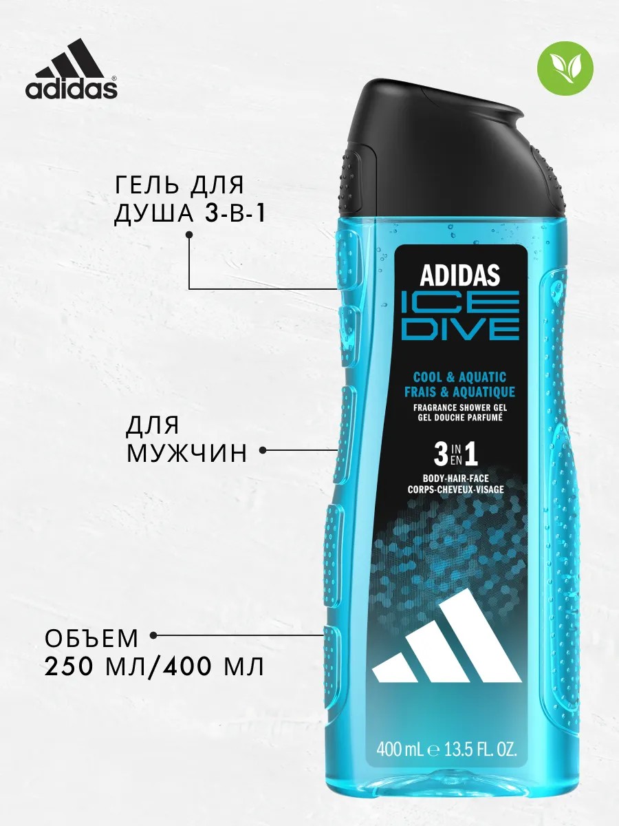 Adidas Ice Dive 3-In-1 Body, Hair, Face Shower is a professional care product created for active men.