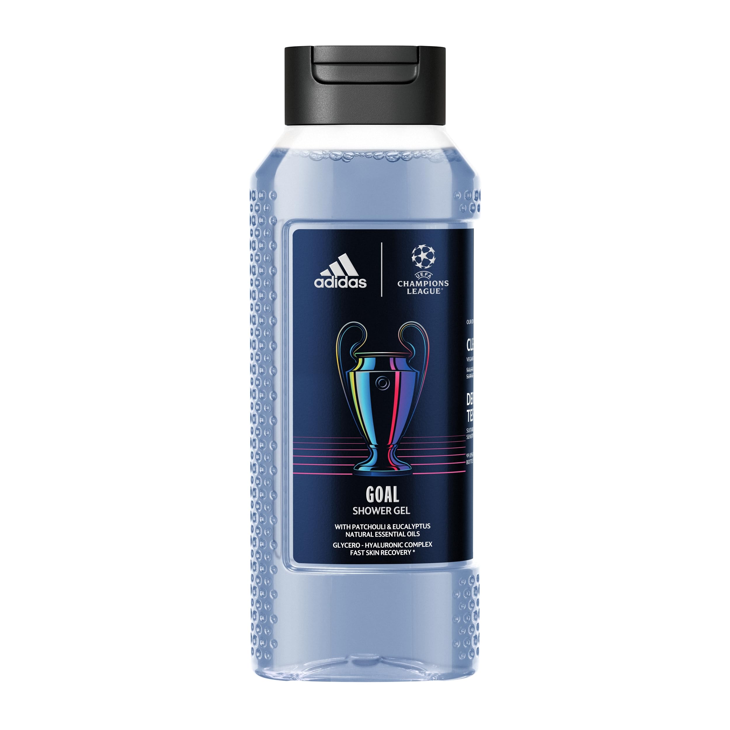 : The adidas UEFA Goal Shower Gel celebrates the power, uniqueness, and love of the game. A clean and vegan formula with natural essential oils of patchouli and eucalyptus, dermatologically tested and suitable for sensitive skin. The shower gel bottle is made from 99.8 recycled materials excluding additives, cap, and label. Ingredients: AQUA WATER EAU, SODIUM C14-16 OLEFIN SULFONATE, GLYCERIN, COCAMIDOPROPYL BETAINE, SODIUM CHLORIDE, PARFUM FRAGRANCE, CITRIC ACID, SODIUM BENZOATE, PENTYLENE GLYCOL, SODIUM HYDROXIDE, TRISODIUM ETHYLENEDIAMINE DISUCCINATE, COUMARIN, SODIUM HYALURONATE, BLUE 1 (CI 42090), EXT. VIOLET 2 (CI 60730). P.when('A').execute(function(A) { A.on('a:expander:toggle_description:toggle:collapse', function(data) { window.scroll(0, data.expander. expander[0].offsetTop-100) }) }) Safety Warning: For external use only. Avoid contact with eyes. Keep away from flames or heat sources. See moreBottle made from 99.8 recycled materials excluding additives, cap and label. Suitable for sensitive skin. Dermatologically tested. Vegan and clean formula. Patchouli eucalyptus essential oils.Description du produit Le gel douche adidas UEFA Goal célèbre la puissance, l'unicité et l'amour du jeu. Une formule Clean et Vegan avec des huiles essentielles naturelles de patchouli et d'eucalyptus, testée dermatologiquement et adaptée aux peaux sensibles. Le flacon du gel douche est fabriqué à partir de 99,8 de matériaux recyclés à l'exception des additifs, du bouchon et de l'étiquette. Ingrédients INGREDIENTS: AQUA WATER EAU, SODIUM C14-16 OLEFIN SULFONATE, GLYCERIN, COCAMIDOPROPYL BETAINE, SODIUM CHLORIDE, PARFUM FRAGRANCE, CITRIC ACID, SODIUM BENZOATE, PENTYLENE GLYCOL, SODIUM HYDROXIDE, TRISODIUM ETHYLENEDIAMINE DISUCCINATE, COUMARIN, SODIUM HYALURONATE, BLUE 1 (CI 42090), EXT. VIOLET 2 (CI 60730). P.when('A').execute(function(A) { A.on('a:expander:toggle_description:toggle:collapse', function(data) { window.scroll(0, data.expander. expander[0].offsetTop-100) }) }) Avertissement De Sûreté Usage externe uniquement. Éviter tout contact avec les yeux. Tenir éloigné de toute flamme ou source de chaleur. Voir plusBouteille composée à 99,8 de matériaux recyclés hors additifs, bouchon et étiquette. Convient aux peaux sensibles. Testé dermatologiquement. Formule vegan et clean. Huiles essentielles de patchouli eucalyptus.adidas UEFA GOAL Edition Gel Douche 250ml – Patchouli Eucalyptus, Formule Vegan, Adapté aux Peaux Sensibles 250 ml (Lot de 1)