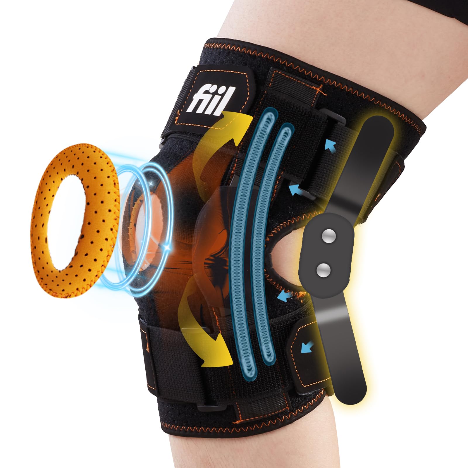 Adjustable Hinged Knee Brace Meniscus Tear Stable Support of The Decompression Knee with Removable Side Stabilizers and Gel Pads Effective Relief of Arthritis Tendinitis Pain For Men and Women (Medium) Medium Black