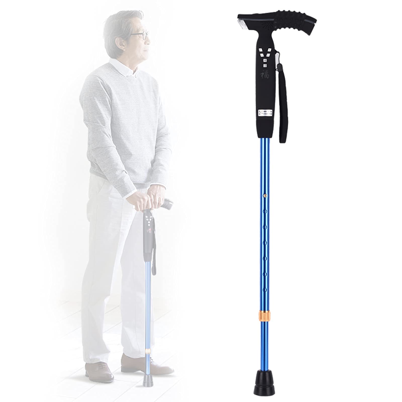 Adjustable Walking Stick Blue Smart Anti Slip Quad Cane for Seniors with Radio for Elderly LED Guide Light