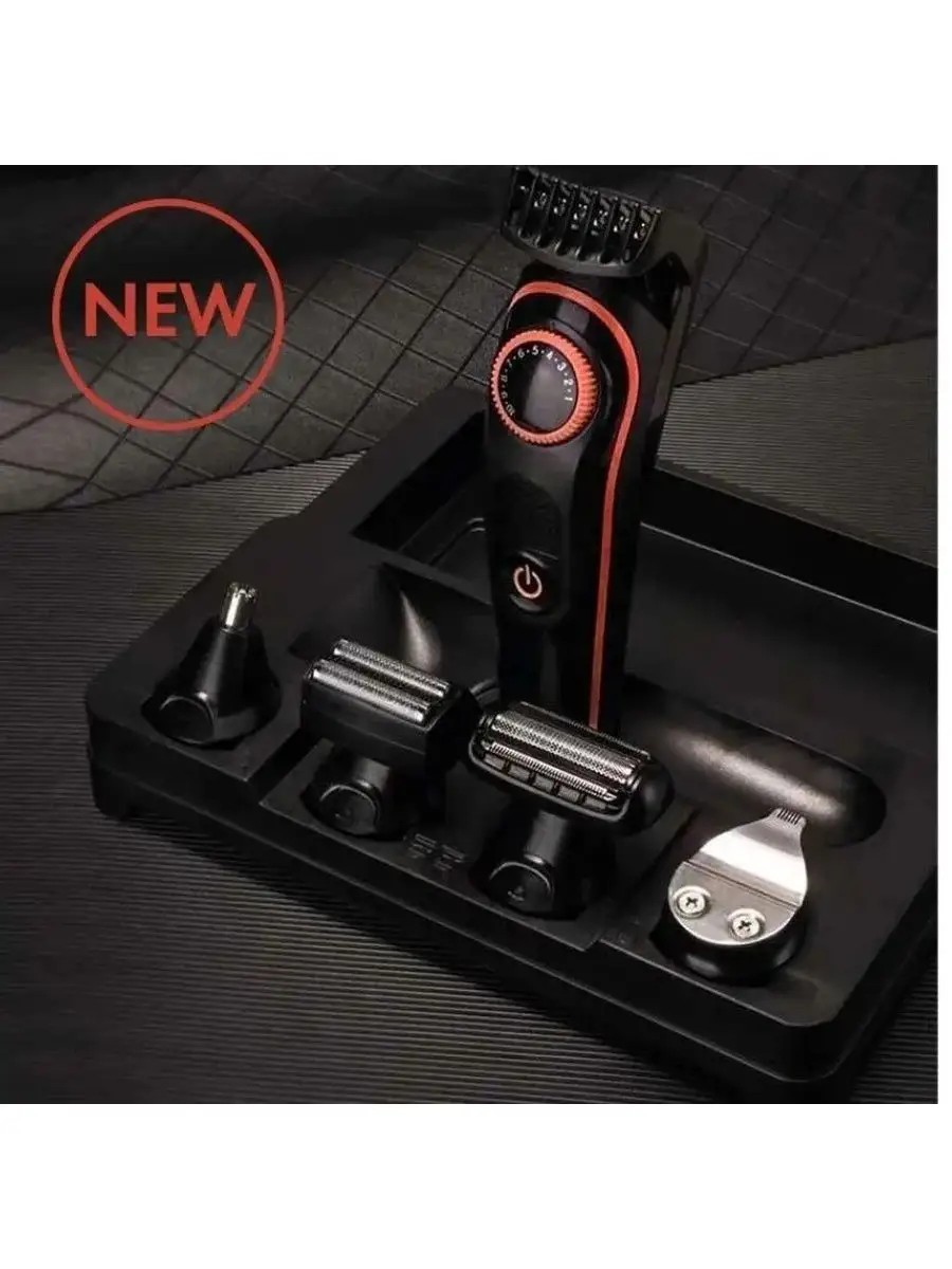 Триммер для бороды - важный и полезный аксессуар, который станет отличным подарком мужчине. Бритва для мужчин электрическая обеспечивает удобство ухода за растительностью, может использоваться для бороды и усов, для носа и ушей. Тример 5 в 1 способен выполнять функции сразу нескольких устройств - машинка для бритья бороды и для стрижки волос. Эргономичная головка для триммера удобна для стрижки бороды и других частей тела. Триммер мужской имеет в комплекте разные насадки для машинки, что делает электробритву машинкой для стрижки волос, для фигурного бритья лица, для бровей, для тела (можно использовать как триммер для интимной зоны мужской). Триммер электрический для волос оснащён острыми лезвиями, нож для триммера из прочной стали устойчив к истиранию, что обеспечивает лёгкость и быстроту удаления растительности. Есть узкая насадка для создания рисунков и хэйр-тату. На корпусе триммера расположен цифровой дисплей, он отображает остаток заряда аккумулятора. Полная зарядка длится 1,5 часа. Время автономной работы от аккумулятора до 2х часов. Подарочный набор для мужчин включает масло для машинки стрижки волос, щеточку для очистки ножей. Электробритва - отличный подарок мужчине на День рождения или любой другой праздник.