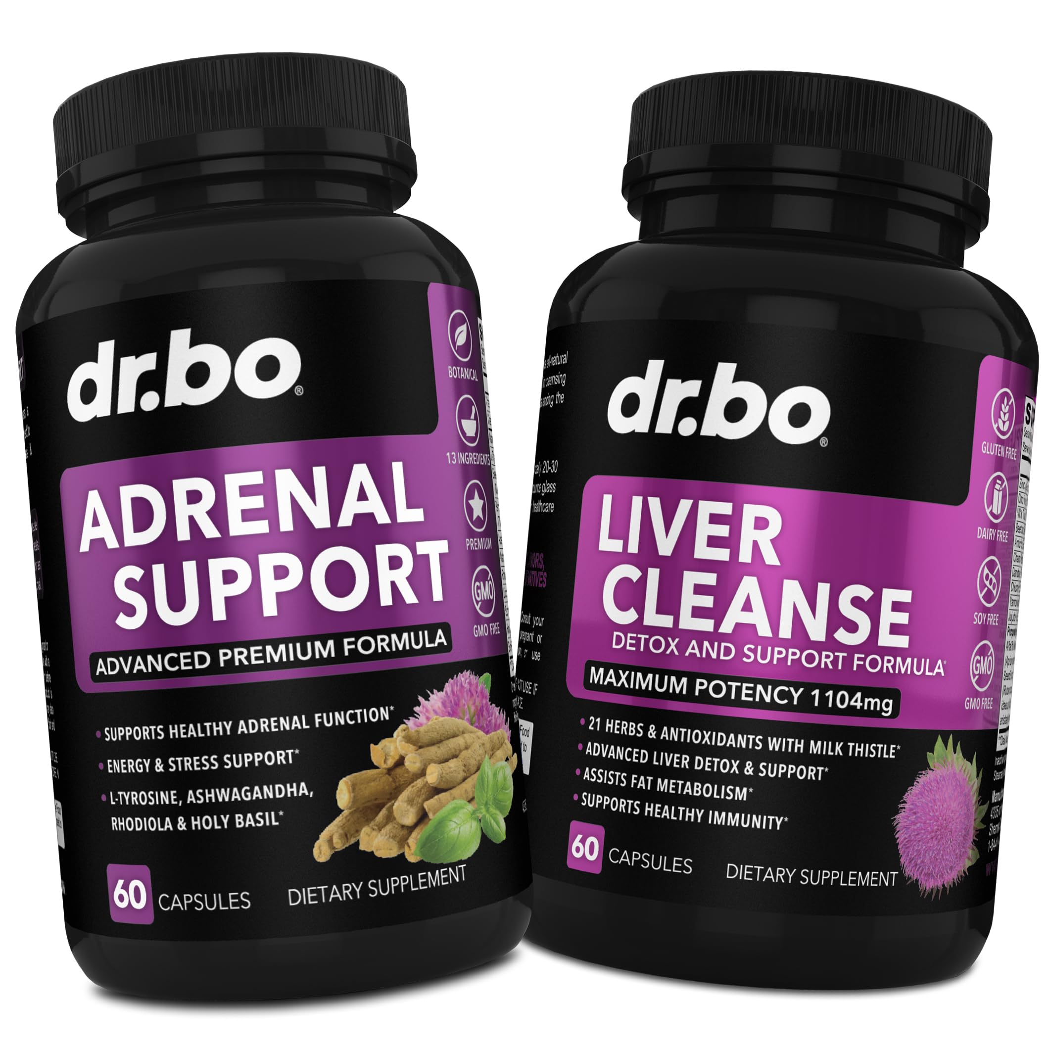 Natural: Dr. Bo adrenal support supplements deliver the best balance for a complete adrenal gland cortisol health supplement complex pill with pure l tyrosine, holy basil, ashwagandha and rhodiola. Gentle Daily Cleanser: Liver supplement kit to support energy, digestion immune system support your best health daily, flush and cleanse for liver gallbladder focus with these detox capsules. Adrenal Support Supplements for Women Men: Adrenal fatigue supplements are priority for energy, mood stress our pills come with l tyrosine adaptogen ashwagandha rhodiola rosea root holy basil. Advanced Liver Cleanse: This natural formula of herbs antioxidants support a liver detox effective function try our liver cleanse detox formula. Premium Adrenal Support Supplements: Our cortisol manager adrenal fatigue supplements for women men support natural adrenal gland health for fatigue, mood, stress and energy for daily balance.