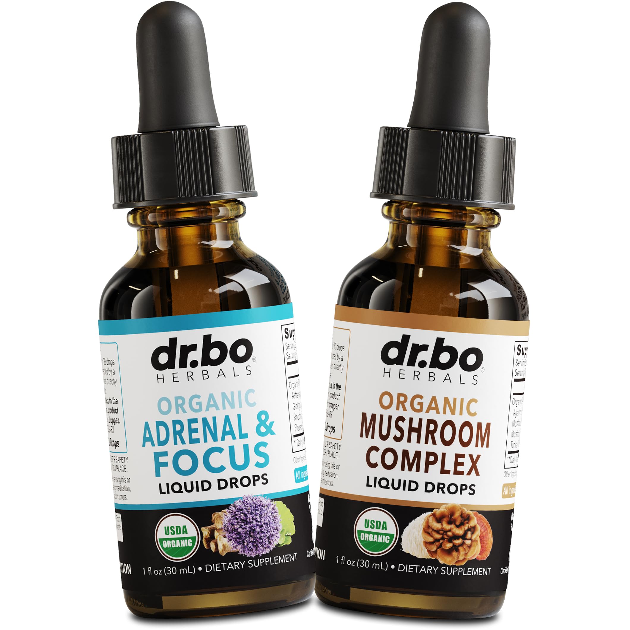 Support the adrenals, focus and brain health with our organic adrenal and focus tincture and mushroom complex liquid drops.