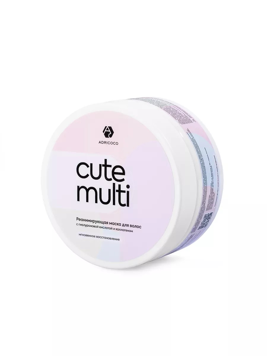 ADRICOCO, CUTE MULTI, Revitalizing Hair Mask with Hyaluronic Acid and Collagen, 200 ml. ADRICOCO CUTE Multi-Purpose Hair Mask with Hyaluronic Acid and Collagen. Designed for intensive restoration and hydration of hair strands.
