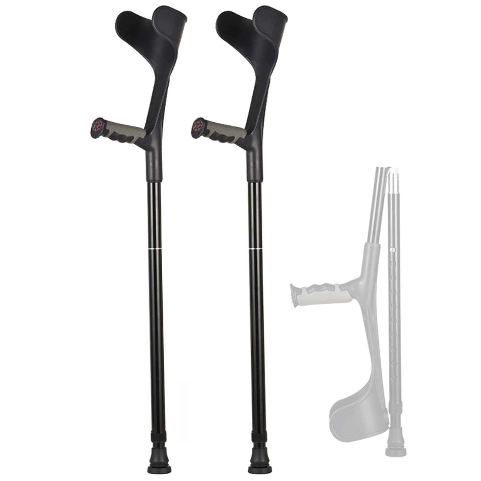 Whether You Are Temporarily Injured or a Chronic Disease That Requires Crutches, Our Crutches Are Your Choice. Forearm Crutches Provide Ergonomic Support to Suit Your Exercise and Weight Distribution. Crutches Are of Great Help to the Limited Mobility of the Lower Limbs. for Example, They Are Used after Sports Injuries, after Surgery or to Avoid Pain. There is a Reflector on the Front to Increase Safety. Name: Forearm Crutches Material: Aluminum Alloy, Abs Plastic, Rubber. Adjustable Height: 93-116Cm (36.6-45.7Inch) Size: 48Cm (19Inch) Applicable Height: 140-180Cm Net Weight: 500G Color: Black, Silver Gear Adjustment: 10 Gears Applicable People: Unlimited Specification: 1 Piece, 1 Pair Note: the Size is Manually Measured, There May Be an Error of 1-3Cm, Please Refer to the Actual Product. Different Computer Monitors May Have Color Difference, Please Refer to the Actual Product.Forearm Crutches, 128 Arc Fits the Elbow Part of the Process, the Arc is Suitable, and It is Comfortable to Use Multiple Support Points, Disperse the Pressure on the Hand and Reduce the Pressure. able Design, the Size of the Crutch after : 48Cm Non-Slip Foot Pad, Made of Rubber Material, Good Non-Slip Effect, Durable. Grip Part of the Crutch is Designed with Non-Slip Soft Rubber, Which is Compressive and Wear-Resistant the Palm of the Hand Will Not Slip When Sweating the Humanized Reflector Lamp Makes It Safe to Travel at Night. Crutches, Ergonomic Design, Humanized "U"-Shaped Elbow Rest, Abs Material, Provide Good Support and Comfortable to Use. Aluminum Alloy Material, Lightweight, 1.2Mm Pipe Wall, Stable, Not Easy to Rust, High Load-Beacapacity, Can Bear 100Kg Can Be Used for a Long Time.