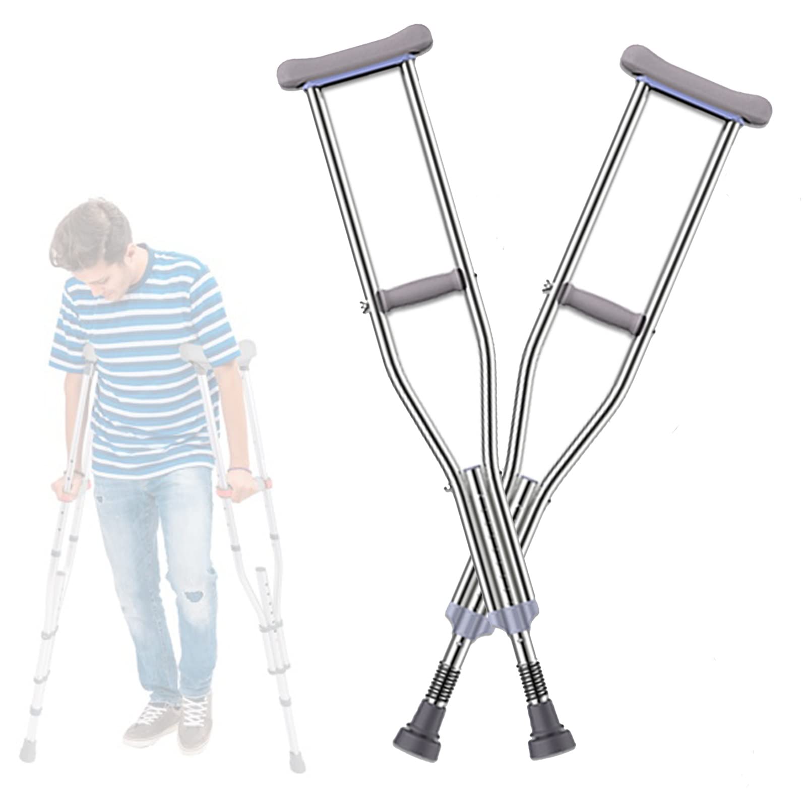 Adult Underarm Crutches, Stainless Steel, Removable Walking Adjustable Crutches Features: Comes with comfortable soft and durable armpit sleeves and hand-grip crutch pads. There is a thickened non-slip tpr pad at the bottom, which makes the crutches more sturdy and not easy to move. Nine high and low gears adjust the height of the crutches for people of different heights. The crutches can be easily assembled and disassembled for easy storage. Specification: Color: silver Material: Stainless steel Features: Built-in shock absorption system size: Small: 106-126cm 42-50inch (suitable for height 130-153cm 51-60inch) Medium: 117-137cm 46-54inch (suitable for height 154-174cm 61-69inch) Large: 127-147cm 50-58inch (suitable for height 175-195cm 69-77inch) Max Weight: 440lbs packing list: 1 pair of crutchesStainless steel adult crutches, sturdy and durable, will not oxidize and rust, have a strong bearing capacity, and can withstand a weight of 200kg 440lbs. 360-degree inclined all-terrain foot pad, rubber material, non-slip, strong stability, to ensure safe use in any activities. We are committed to providing you with the best service. If you have any questions, please feel free to contact us. The foot tube of the walking stick can be adjusted in 9 heights, and the handle can be adjusted in 4 heights. You can adjust it to the height that best suits you at will. Our underarm crutches have a shock-absorbing spring design, which effectively reduces the impact on the body when landing, without causing pain and discomfort to the underarms.