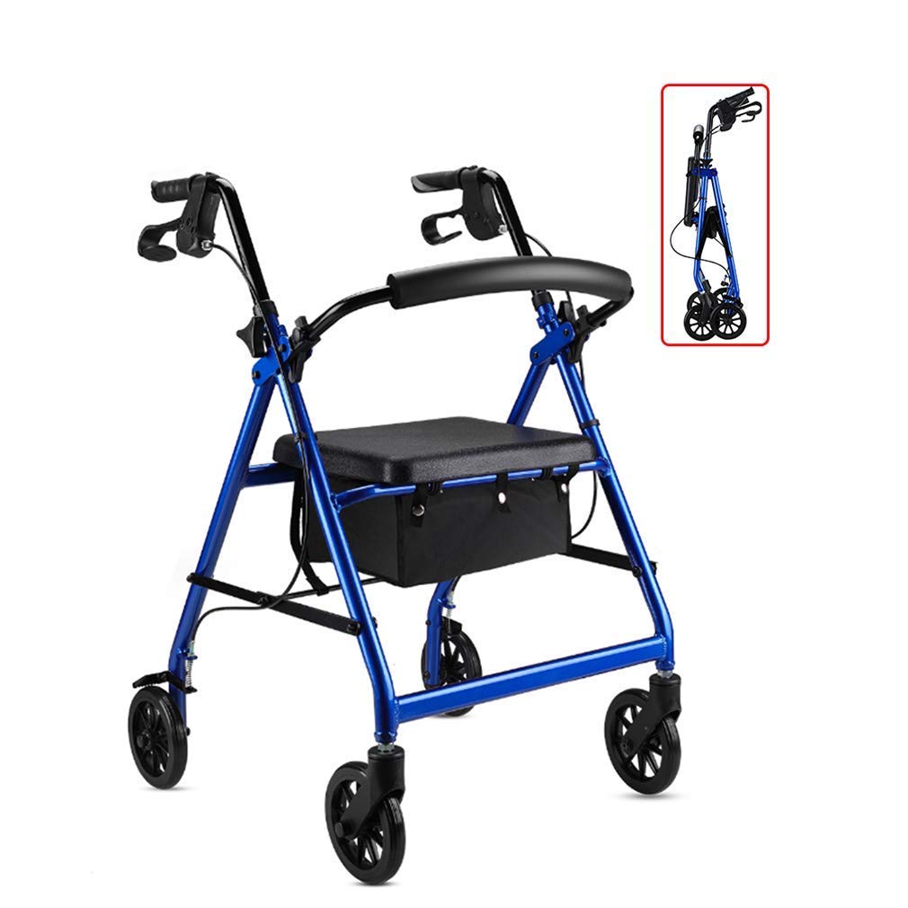 Adult Walking Aid Compact Trigger Release with seat and Back Vertical Walker 6 inch Wheels Interesting Blue