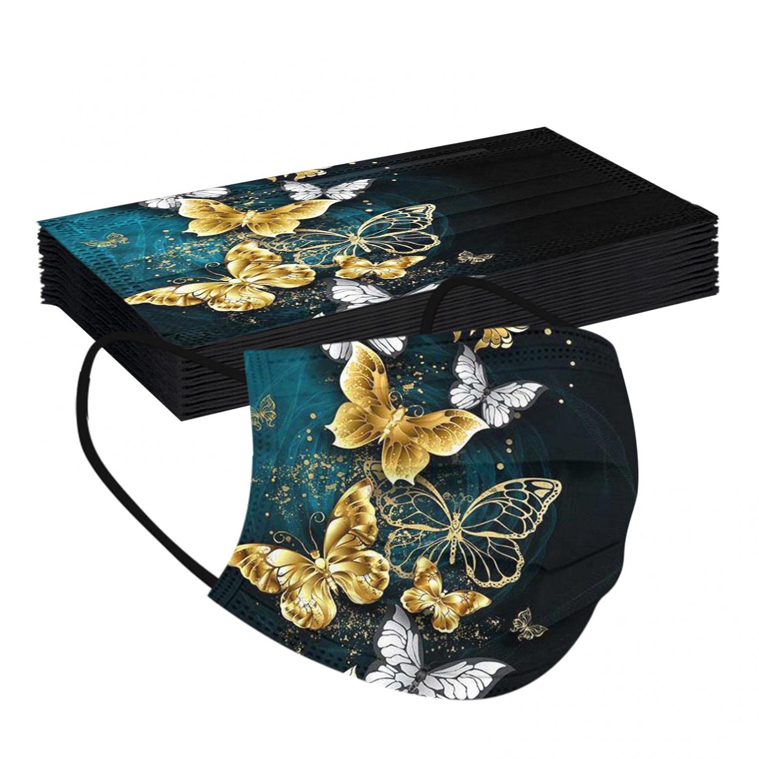 Adults Black Disposable_Face_Masks_Butterflies_Printed_Face_Cover Non-Woven Fabric Comfotable for Outdoor Daily Protction