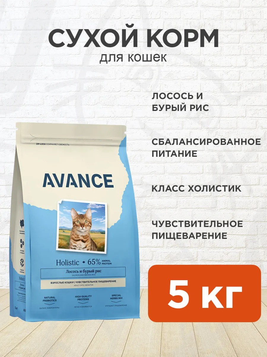 Avance Корм для кошек сухой для чувствительных лосось рис 5 кг